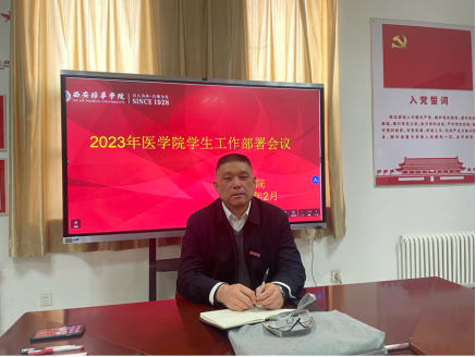 为高度统一思想认识,凝心聚力,强化责任落实,确保顺利完成审核评估工作,有序推进新学期学生工作的开展,2月23日上午,医学院在党团活动室8330召开2023年医学院学生工作部署会议。医学院党委书记兼行政副院长王平安、党委副书记何丽及学院全体辅导员参加本次会议。