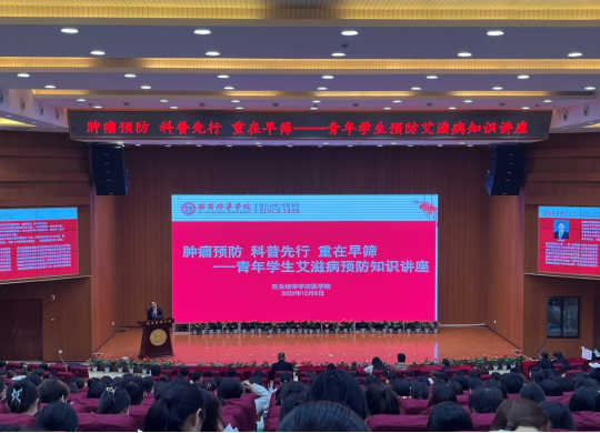 为了普及艾滋病防治知识,提高我校广大师生防艾知识水平,12月8日下午,正值第36个“世界艾滋病日”,医学院在我校图书馆报告厅开展了“肿瘤预防,科普先行,重在早筛——青年学生艾滋病预防知识讲座”,特邀陕西省肿瘤医院副院长、党委委员、病理部主任李林教授主讲。医学院党委书记兼行政副院长王平安、医学院党委副书记何丽及2023级本科生参加了本次讲座,会议由医学院党委书记兼行政副院长王平安主持。