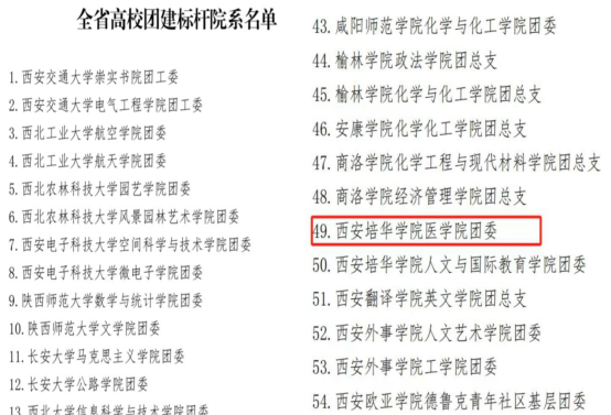 近日,共青团陕西省委、中共陕西省委教育工委联合下发《关于全省学校团建示范培育结果的通报》,我院团委获批“全省高校团建标杆院系”。