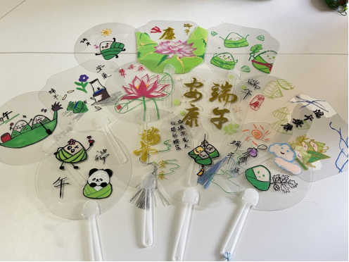 亲手绘扇,品味端午。同学们将团扇绘制与青春、爱国、传统文化等多元主题相结合,借“扇”喻“善”,以“莲”寓“廉”,将团扇与各种寓意相结合,形成作品,色彩纷呈。
