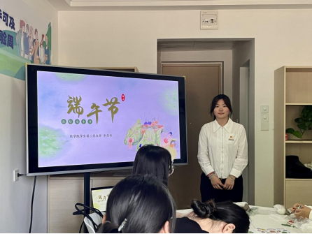 接着学生第二党支部党员李茜硕同志为大家讲解了端午节的起源、习俗与精神内涵。“文化自信,是更基础、更广泛、更深厚的自信。”文化自信源于优秀文化的有力支撑。端午节作为中国最古老的节日之一,汇聚了中华民族几千年的文化精髓。守好传统节日的“根”,让文化在薪火相传中,为民族复兴凝聚精神力量,是欢庆端午节的意义所在。