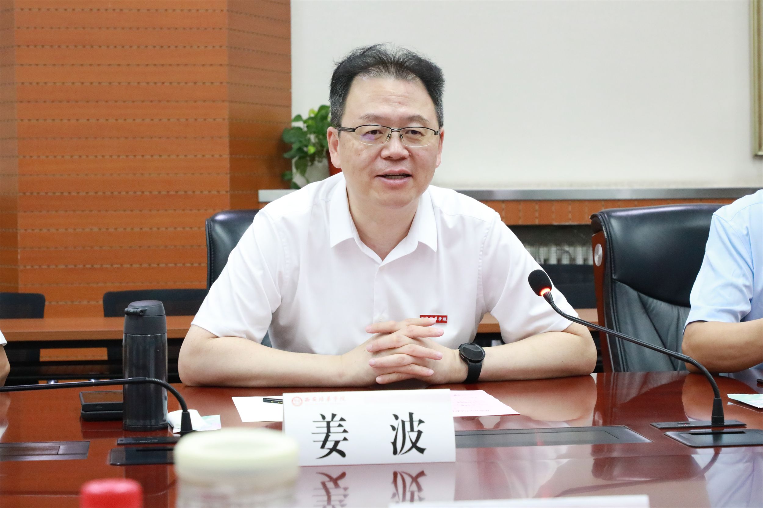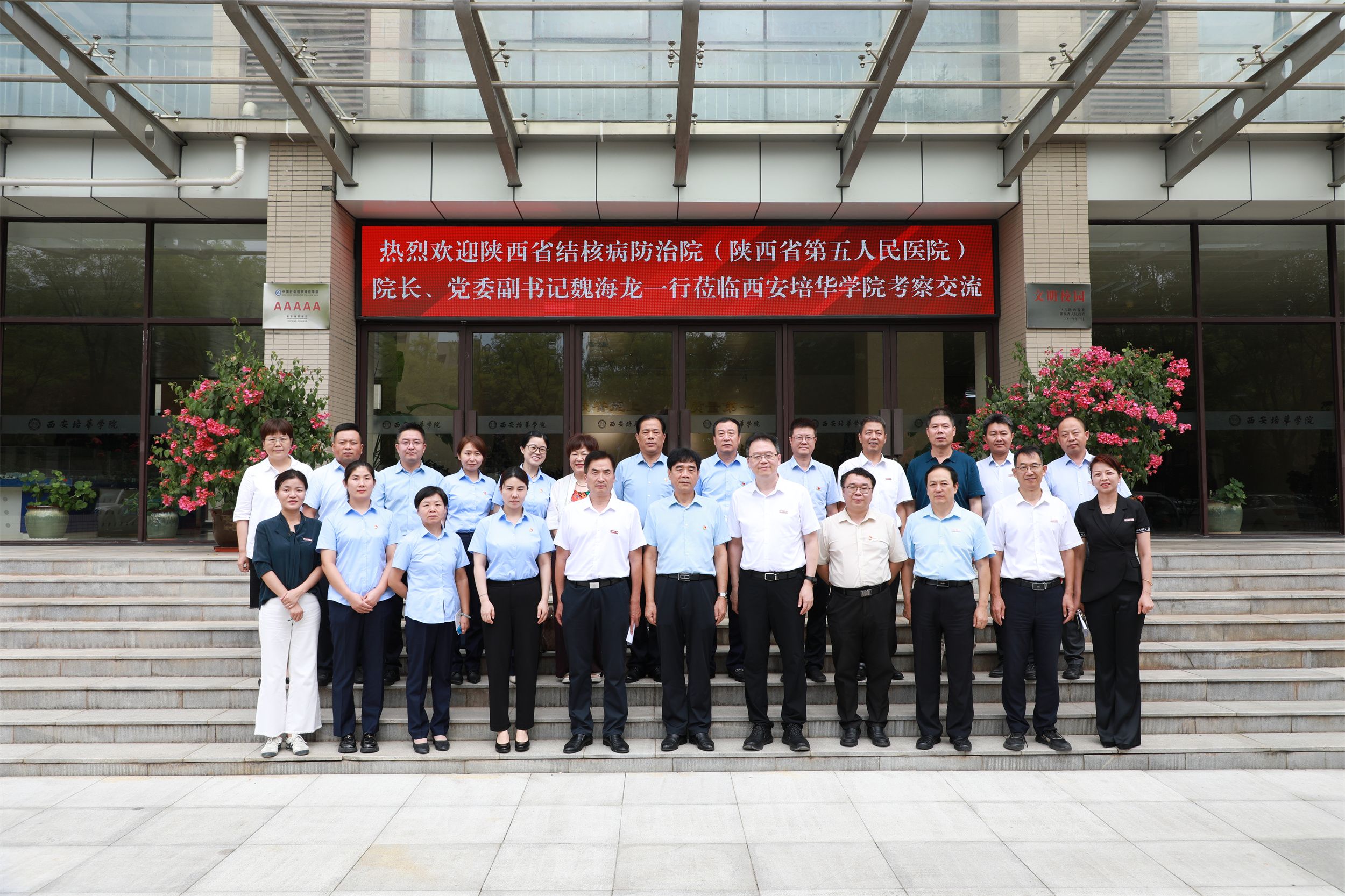8月27日上午,陕西省结核病防治院(陕西省第五人民医院)魏海龙院长一行莅临西安培华学院考察交流。理事长姜波、常务副校长胡俊生、校长助理秦海锋以及校机关部门领导、医学院领导参加了交流会。