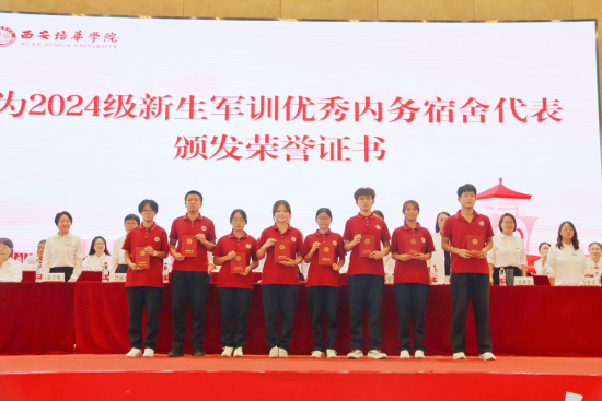为2024级新生军训优秀内务宿舍代表颁发荣誉证书