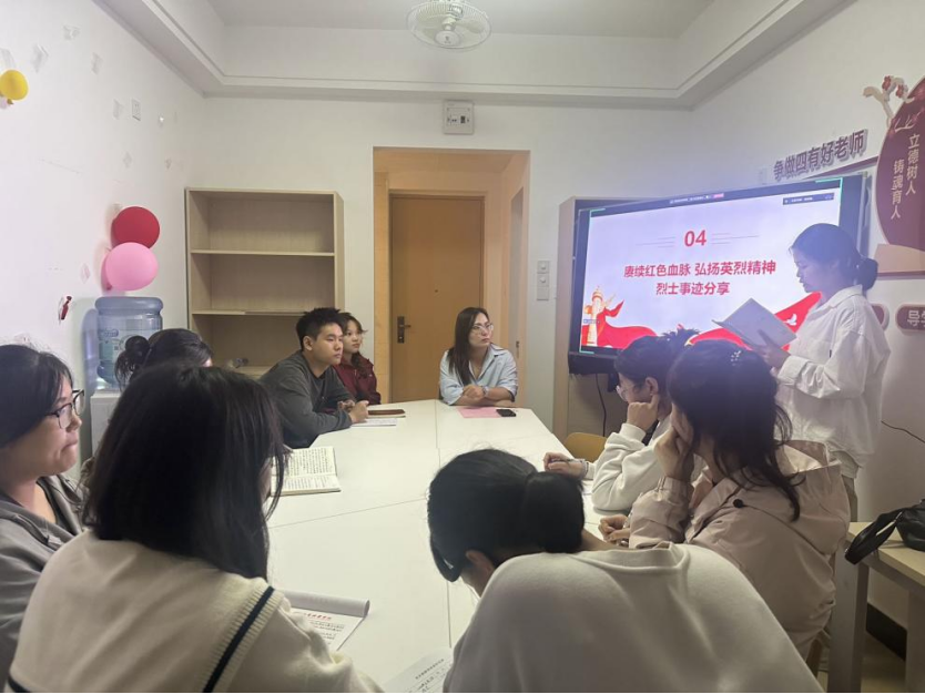 会议第三项,烈士事迹分享。2024年9月30日,是我国第11个烈士纪念日,在第11个烈士纪念日即将到来之际,为深切缅怀革命先烈,追忆英烈事迹,弘扬爱国主义精神,支部开展了赓续红色血脉,弘扬英烈精神烈士事迹分享会。