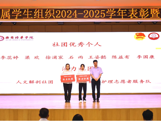 大会第二项医学院党委副书记何丽宣读《关于表彰西安培华学院医学院团属学生组织干部的决定》