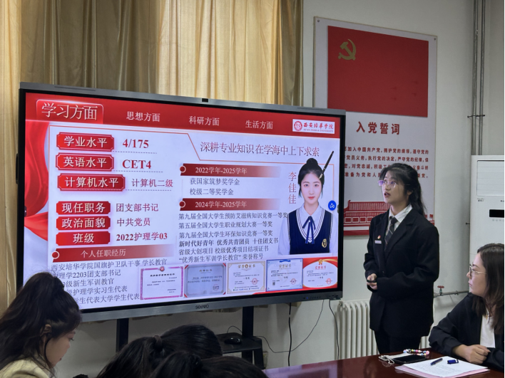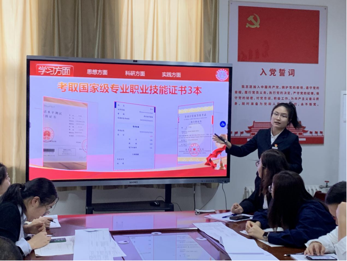 参加答辩的同学在简短的5分钟时间里,用干练的言语和精美的ppt分别从个人学业、思想状况、学科竞赛、科研项目申报、社会实践服务等方面取得的突出成就展开阐述。短短五分钟的展示,浓缩了他们求学漫漫路中的付出和收获。在他们各种荣誉的背后,是日日夜夜的勤奋刻苦与不忘初心的信念。他们各自分享着自己从大一踏进校园开始至今为止的学习历程。他们的学习经历也鼓舞了在场的同学们,激励他们确立自己的人生目标并坚持不懈奋斗。