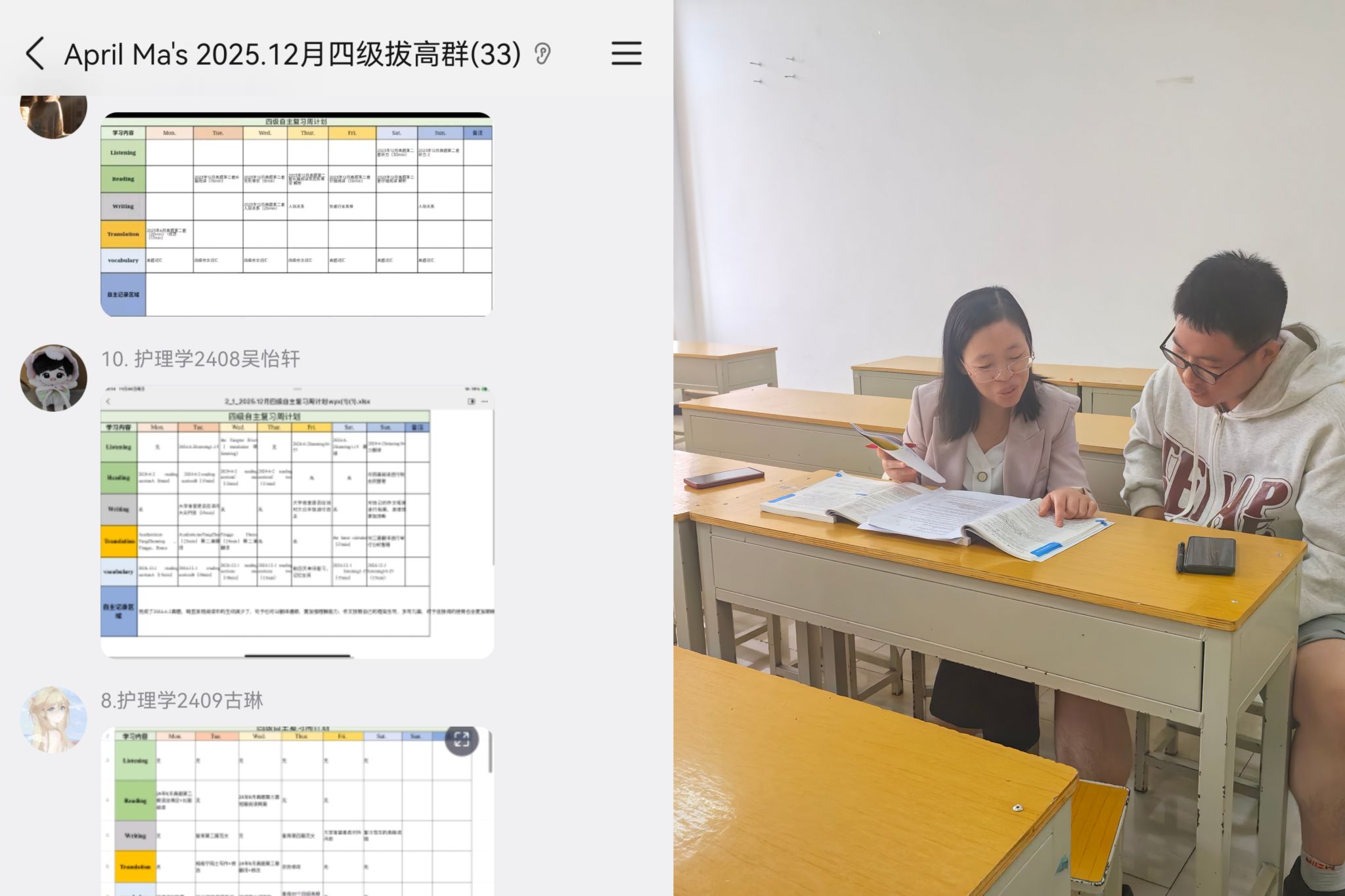为深度推进我院大学英语教学改革,以学院“学风建设月”为契机,抓住学生四、六级备考关键期开展全方位过级精准辅导。创新搭建“四、六级研修室”专属学习阵地,为每周的研修日配备针对性研修资料,营造沉浸式、高效率学习环境;同步开设线下四、六级专项提升课程,邀请有多年四、六级阅卷经验的老师,聚焦答题技巧、时间规划、高频易错点解析及全真模拟训练等内容开展系统化教学,助力学生熟悉考试流程、适配考试节奏、增强应试信心,推动学生从知识积累向应试能力高效转化,切实提升四六级通过率与大学英语育人质量。