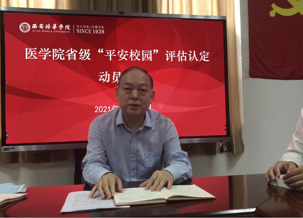 根据《中共西安培华学院委员会关于省级“平安校园”评估认定工作实施方案》精神和要求,2021年10月11日9:30分,医学院在至善楼8330党员活动室召开省级“平安校园”评估认定动员大会。西安培华学院副校长兼医学院院长于国亮、医学院常务副院长扈国栋、党委书记兼行政副院长王平安、教学副院长王菊宁、科研副院长王巧峰、党委副书记何丽,院党委委员、各支部书记、各系主要领导及教学干事、学生干事参加会议。会议由医学院党委书记兼行政副院长王平安主持。