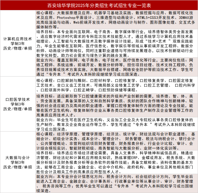 附:西安培华学院2025年分类招生考试招生专业一览表