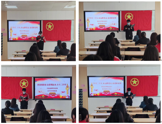 学校组织开展了“学习二十大 永远跟党走”党员故事分享会,再一次回顾了党的光辉历史,感悟到革命先辈们抛头颅洒热血换来了现在幸福的生活,引导学生珍惜当下,刻苦学习,用自己的实际行动服务同学,奉献社会,不忘初心,砥砺前行,努力成为社会主义的合格建设者和可靠接班人。
