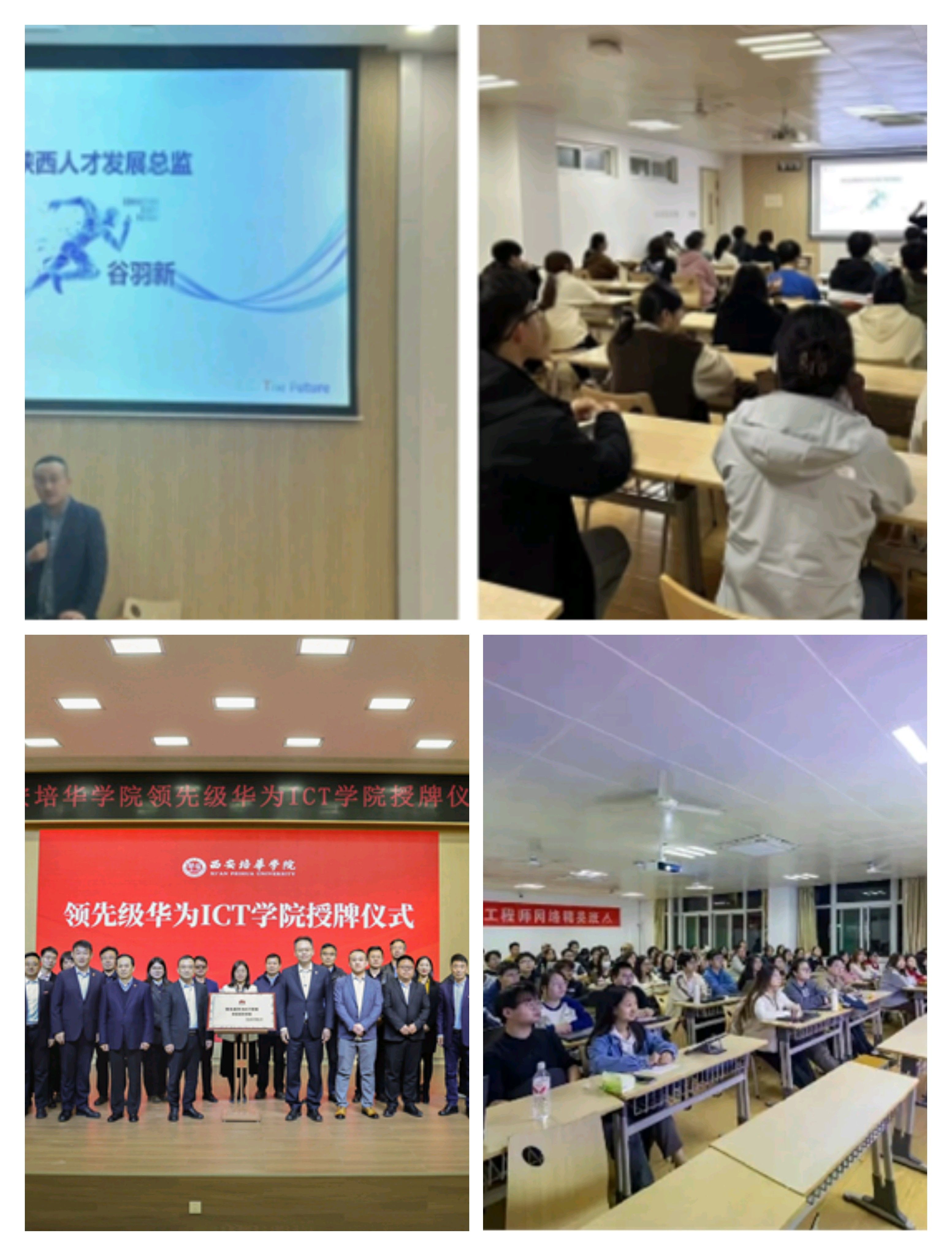 2020年西安培华学院与华为技术有限公司正式签约成立,纳入华为全球ICT学院生态体系,聚焦大数据、云计算、人工智能、5G等方向,培养“技术+实践”复合型人才。2023年在ICT学院基础上,我校智能科学与工程学院与华为进一步合作共建ICT产业学院,产教融合协同育人,华为提供技术标准、课程资源、认证体系,学校整合教学资源。ICT产业学院通过校企深度合作,构建了“课程-认证-实训-就业”一体化人才培养体系,成为陕西省应用型ICT人才培养的重要基地。