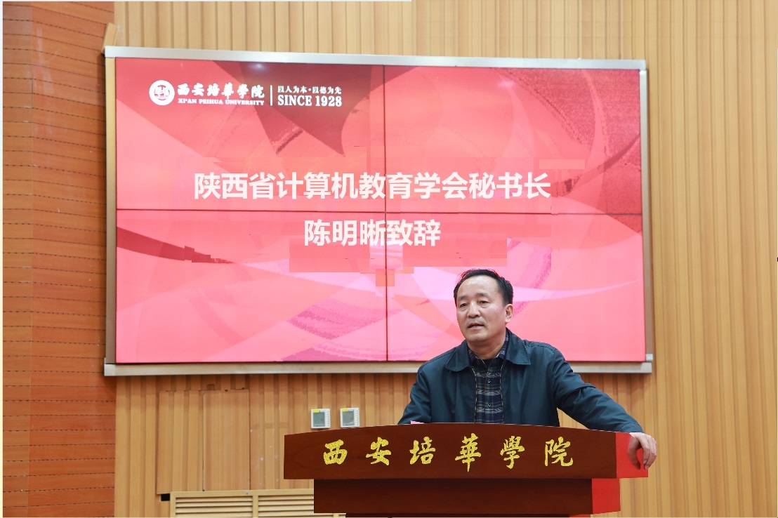 陕西省计算机教育学会陈明晰代表陕西省计算机教育学会对本次会议的召开表示热烈祝贺。一直以来,陕西省计算机教育学会和西安培华学院智能科学与信息工程学院紧密合作,在科学研究和人才培养方面取得了一些成绩,希望今后进一步加深合作,争取获得一些高水平的标志性成果。