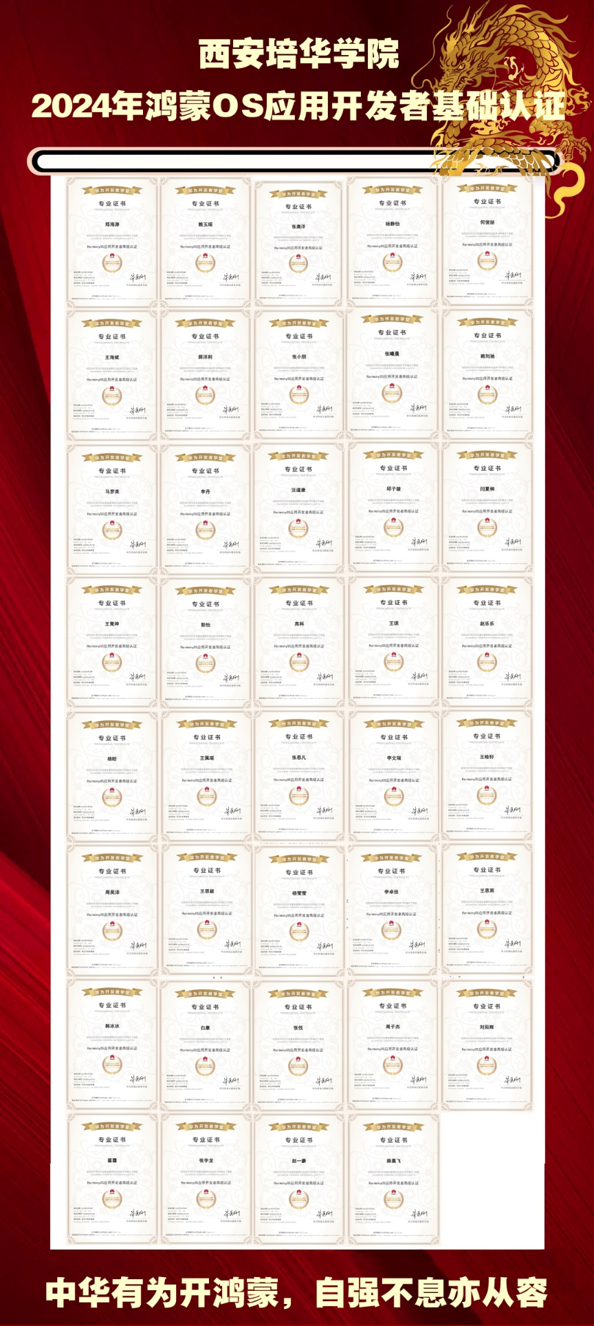 在训练营现场,学生们展现出了极高的学习热情和参与度。经过紧张而充实的学习,共有39名学员成功考取了《HarmonyOS应用开发者基础认证》证书,这既是对他们个人能力的肯定,也是对训练营教学质量的最好证明。