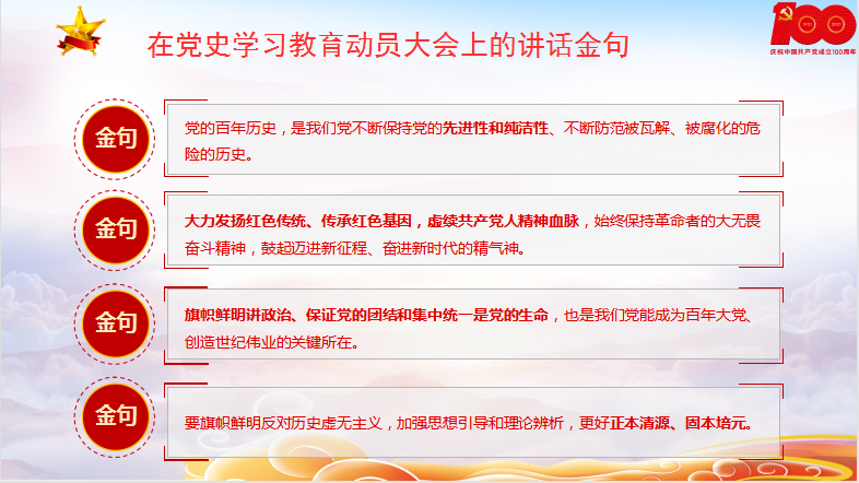 第四,习近平总书记在党史学习教育动员大会上的讲话金句。
