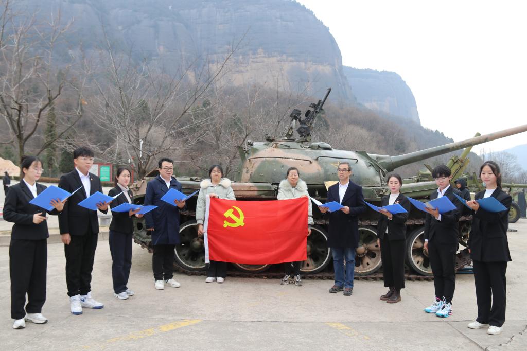 在纪念馆前的1933广场,师生党员代表庄严肃立,面对党旗,重温了入党誓词。在照金纪念馆,认真重温了革命先辈们的英雄事迹,在一段段文字资料、一张张珍贵图片、一件件历史实物前久久驻足,追忆革命先辈浴血奋战的艰苦岁月,接受革命精神的洗礼。