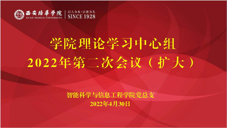 4月30日,我院党总支在院党员活动室召开2022年学院理论学习中心组第二次会议(扩大),专题学习总体国家安全观、中国共产党百年宣传思想、思想政治建设和精神文明建设及党风廉政专题。参会的有学院理论学习中心组全体成员、各支部书记、辅导员等,南兵书记主持会议。