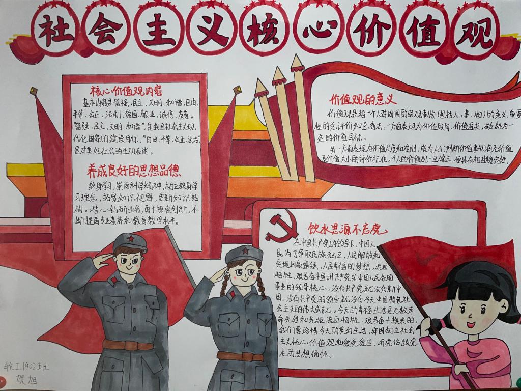 本次活动主要在本次发展对象中进行,围绕“社会主义核心价值观”主题开展手抄报、征文活动。作品内容丰富,紧扣主题,既突出了爱国主义情感,又彰显了学生的个人修养,在全面宣传社会主义核心价值观的基础上,也表达了同学们对待社会主义核心价值观积极的态度。同学们在写、画的过程中,更深刻地理解了社会主义核心价值观的丰富内涵和精神实质。