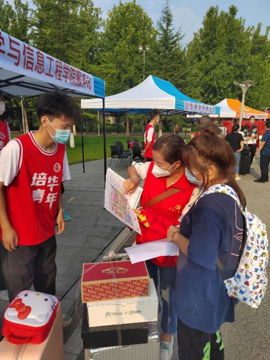 丹桂飘香,荷花满塘,又是一年迎新季。9月13日,西安培华学院的迎新工作正式启动,智能科学与信息工程学院的志愿者们坚守在服务站等候着来自祖国各地的莘莘学子。教师党员们也做好准备,在学校的东门、南门开展接待新生的工作。