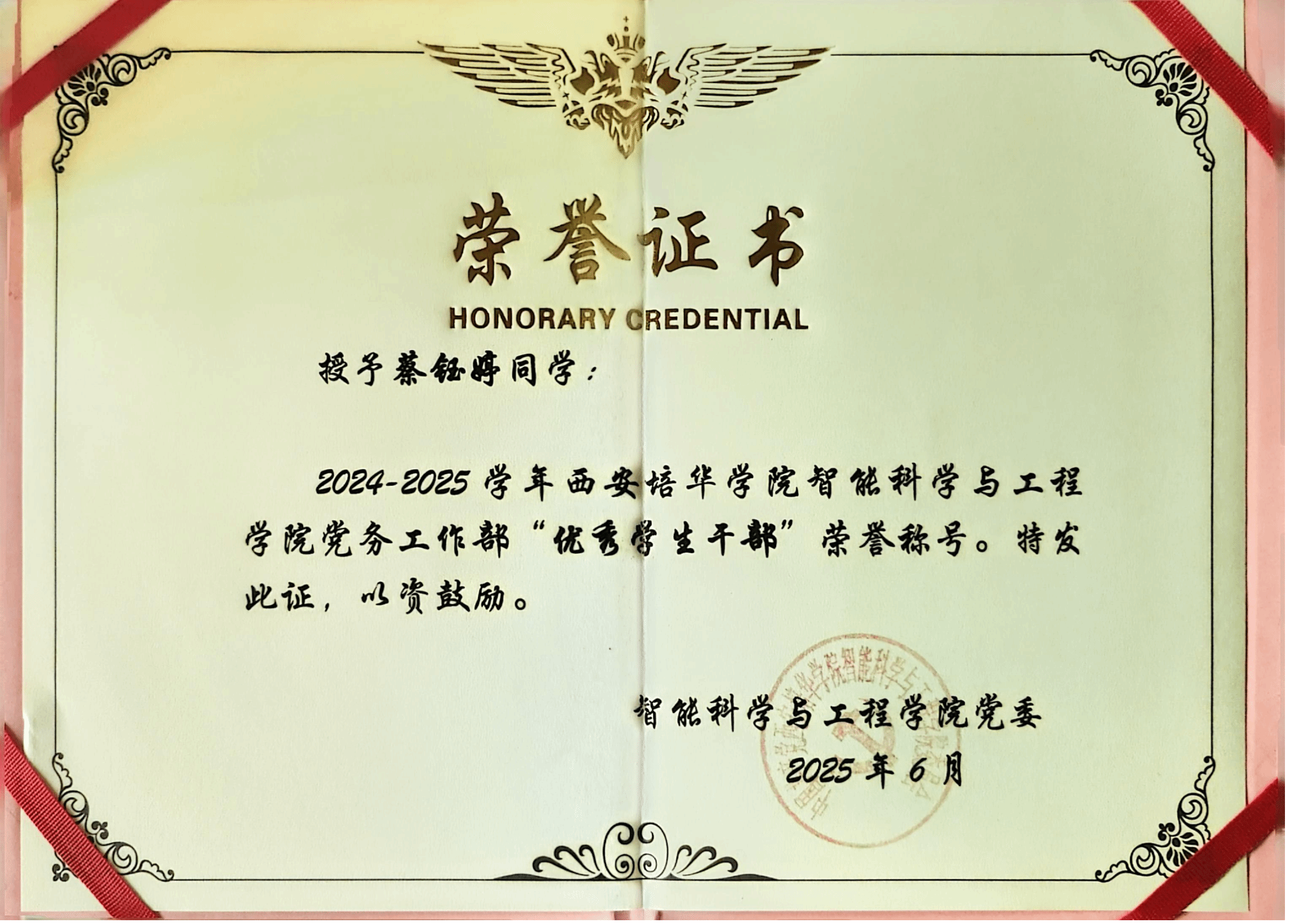学生第五党支部的党员同学,坚定理想信念,积极参与党纪学习教育等党建活动,获评“优秀学习笔记”“红色先锋”。学习上,他深耕计算机科学与技术专业,成绩稳居专业前5%,荣获校级二等奖学金,斩获全国人工智能应用创新大赛陕西赛区二等奖等多项竞赛荣誉,获软件著作权及多项专业技能认证。工作中,他担任班级心理委员,助力学院心理健康教育工作,曾获评“进步工作者”,以全面发展的综合素质展现了新时代大学生党员的良好风貌。