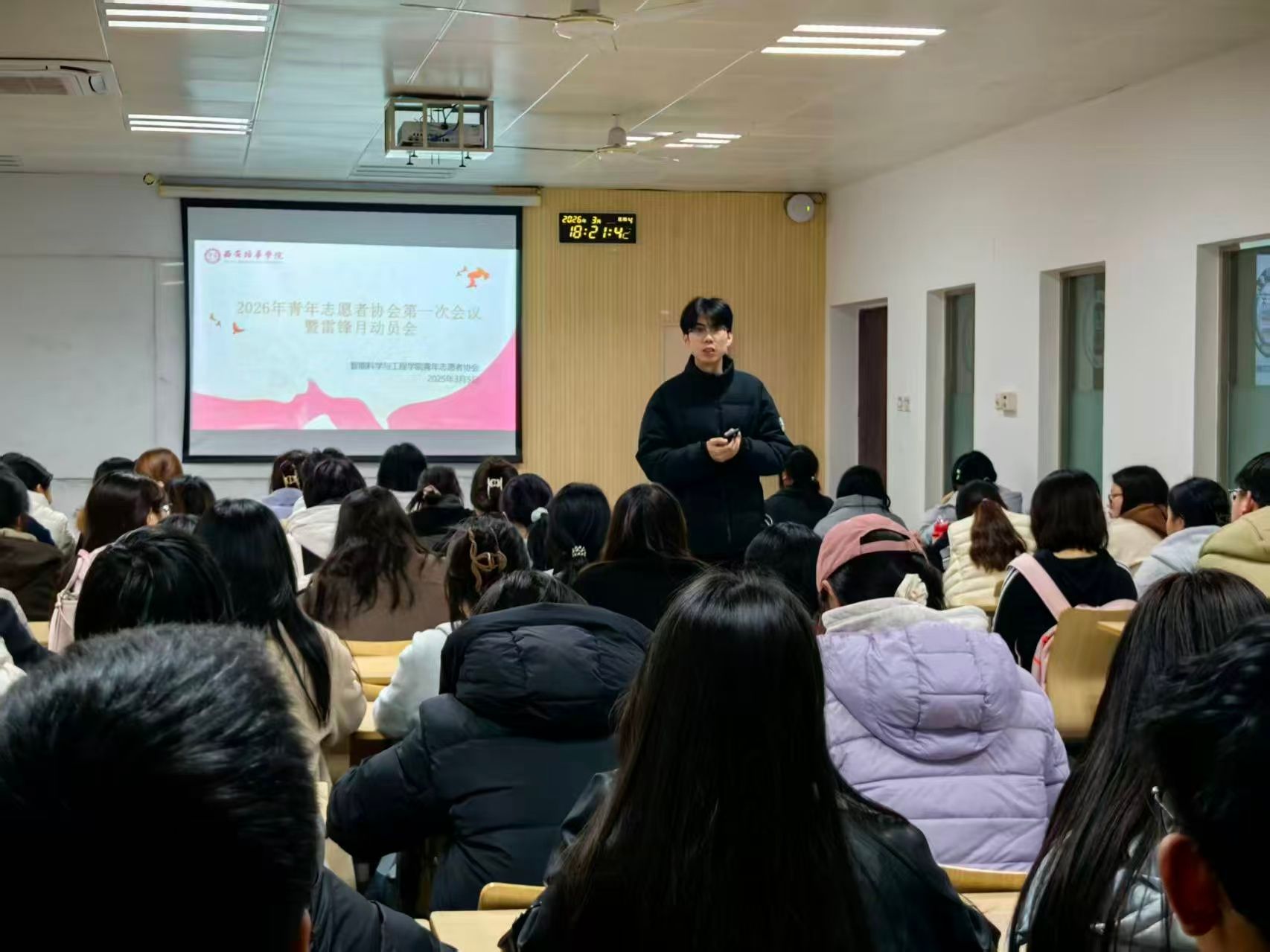 为进一步弘扬雷锋精神,践行“奉献、友爱、互助、进步”的志愿服务理念,引导广大青年学子积极投身志愿服务事业,智能科学与工程学院青年志愿者协会于2026年3月5日在育英楼3319召开2026年第一次会议暨雷锋月活动动员会。本次会议由学院青年志愿者协会指导老师王光明主持,协会全体青年志愿者参加。