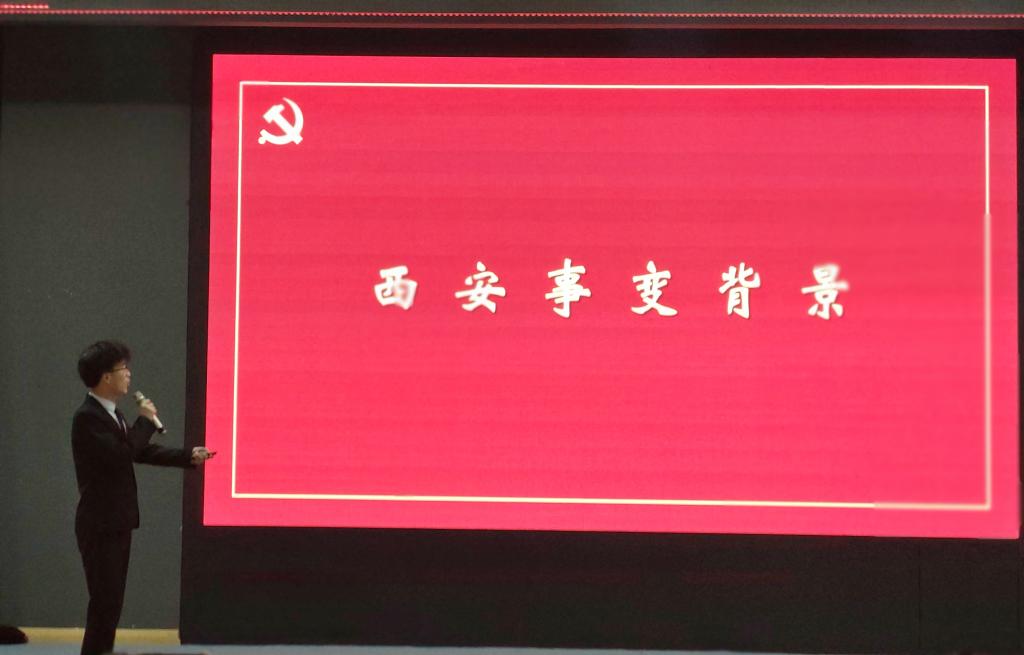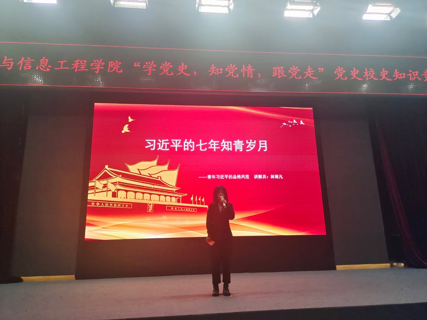 在党史讲解环节中,四支参赛队伍赛前抽取宣讲主题,现场分别以“奉献热血青春,担当时代责任--五四运动”、“红船映初心,热血担使命”、“习近平的七年知青岁月”和“西安事变赢合作,举国抗战新局面”为主题进行了宣讲。他们经过赛前充分的准备和赛中精彩的演讲,将这四个主题熟练、流利、生动的进行了表达,深深地打动、感染和教育了所有在场学生。