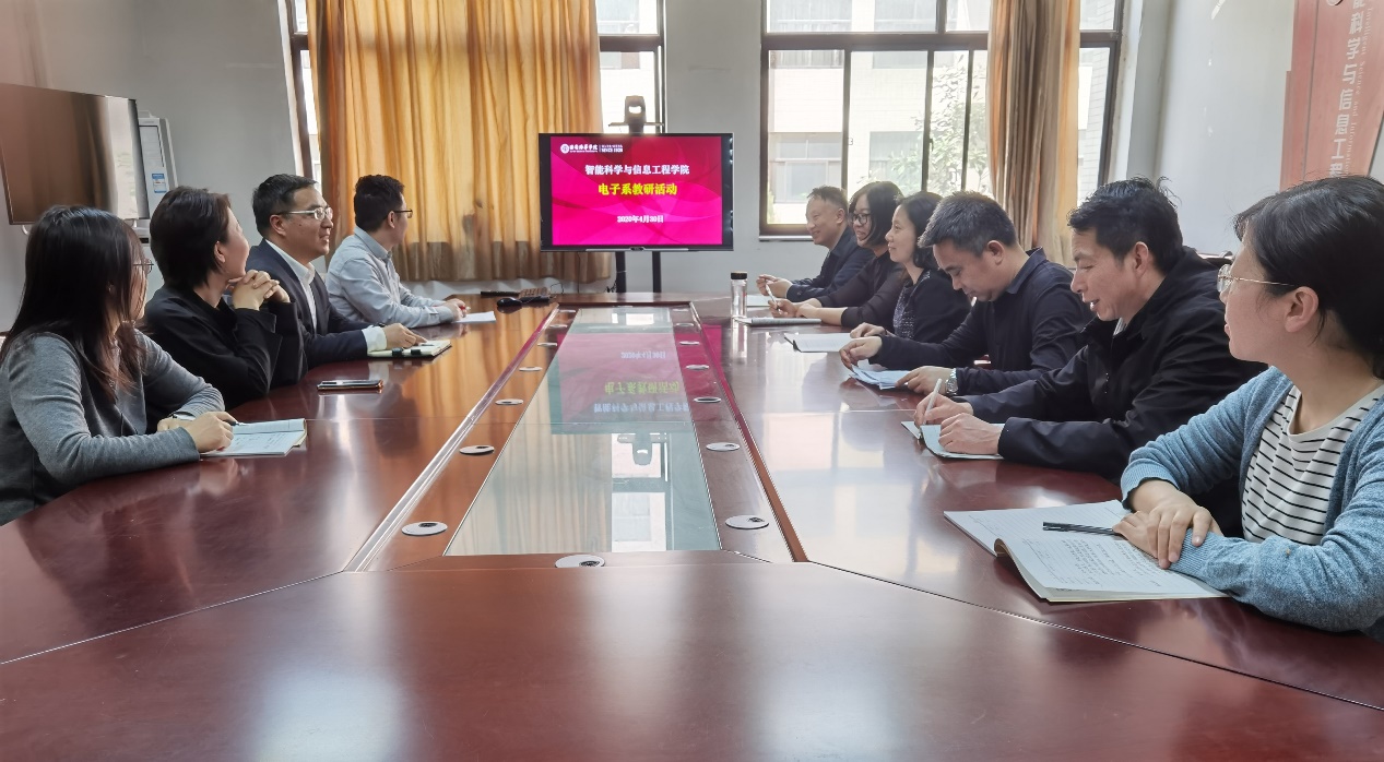 为迎接本年度全国本科审核评估,做好相关准备,分享有效教学科研经验,电子系于4月30日在院会议室组织召开了本学期系列教研活动。本次活动由电子系主任徐进老师主持,电子系全体老师参加。