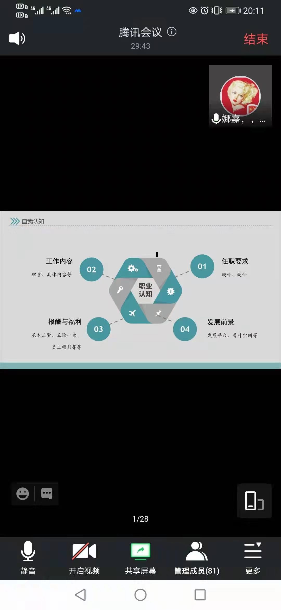 职业规划。陈老师针对职业规划中的“职业”进行了系统的讲解,她提到职业五要素: