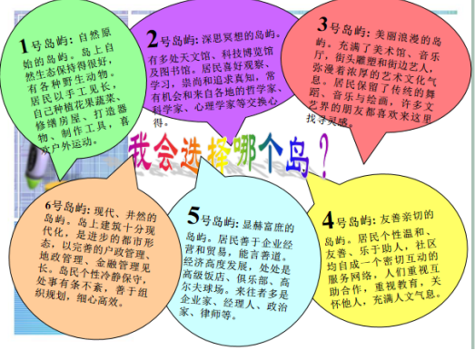 根据王林书记展示的兴趣岛图片,同学们选择自己喜欢的兴趣岛进行发言,王林老师对每个兴趣岛所代表的职业倾向进行,使同学们明确了自己喜欢以及不喜欢的职业。