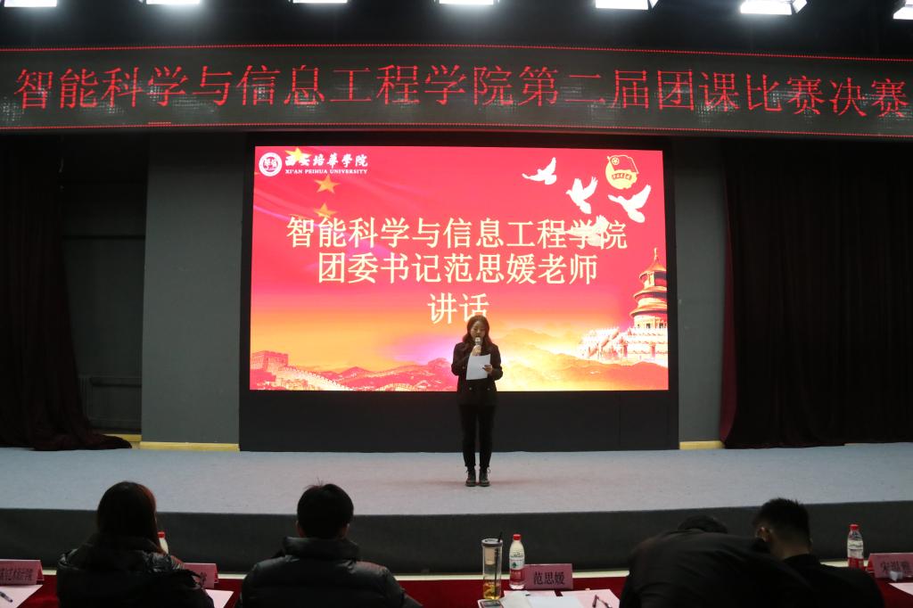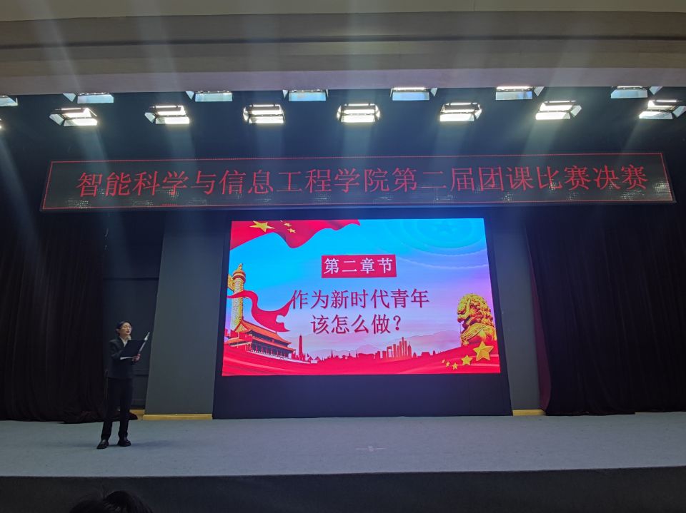 为贯彻落实党的十九届中央委员会第五次精神,进一步继承弘扬党的光荣传统,积极组织引导全院青年团员为实现国家富强、民族复兴与人民幸福的伟大中国梦而发奋学习,不懈努力。智能科学与信息工程学院团委于2020年12月15日在汇知楼阳光厅开展了第二届团课比赛决赛。本次比赛以倡导自由、平等、公正、法治为主题,旨在为校园文化发展注入青春的正能量,切实增强基层团支部的凝聚力、创造力和战斗力,为全院青年团员提供展示个人的能力、实现自我价值的宽阔平台。出席本次比赛的领导和嘉宾有: