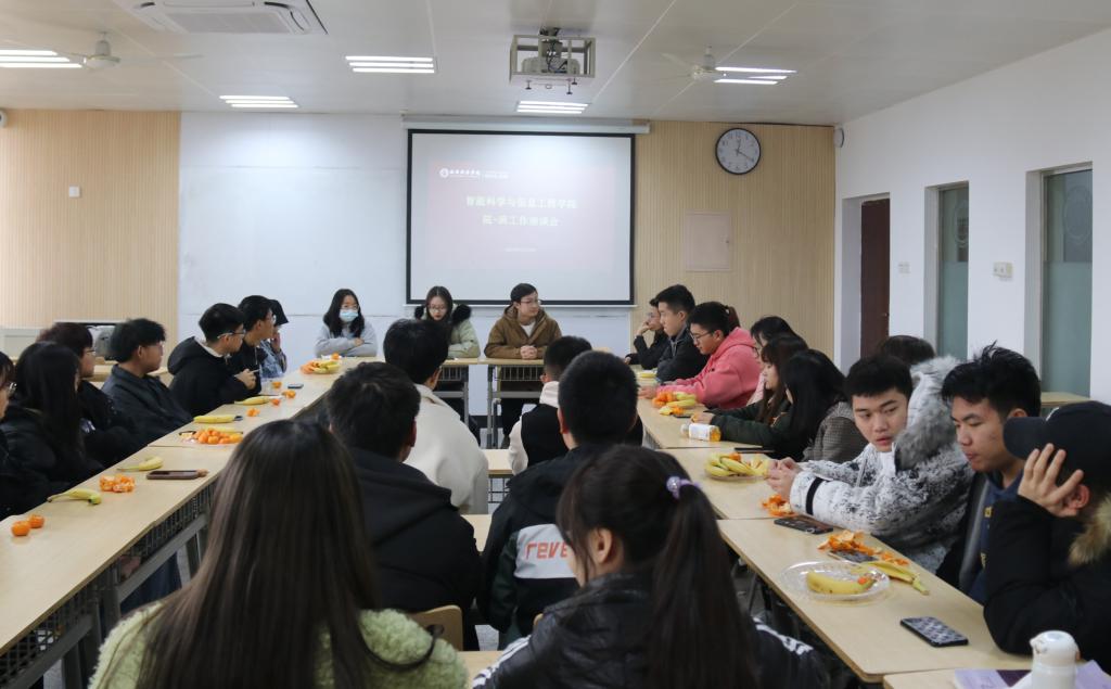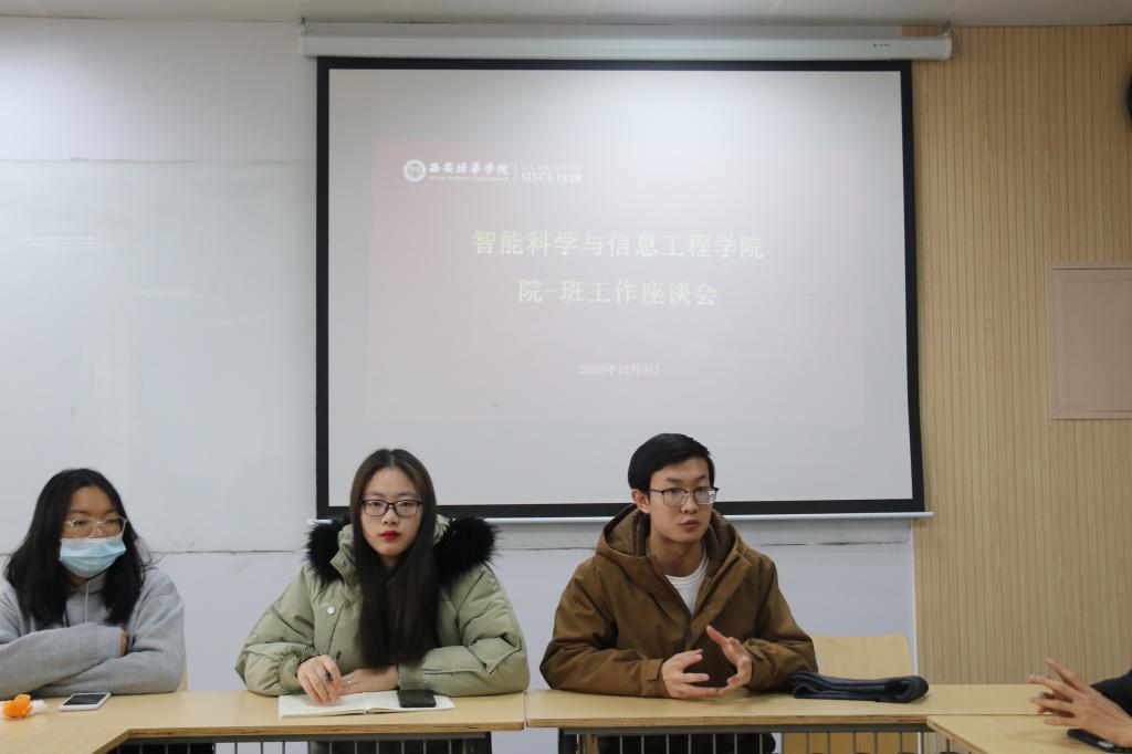 2020年12月9日,智能科学与信息工程学院院班工作座谈会在育英楼3314教室如期举行,出席本次活动的有学生会主席团成员林芳、张贾辉,学生会各部门负责人以及大一各班班委。