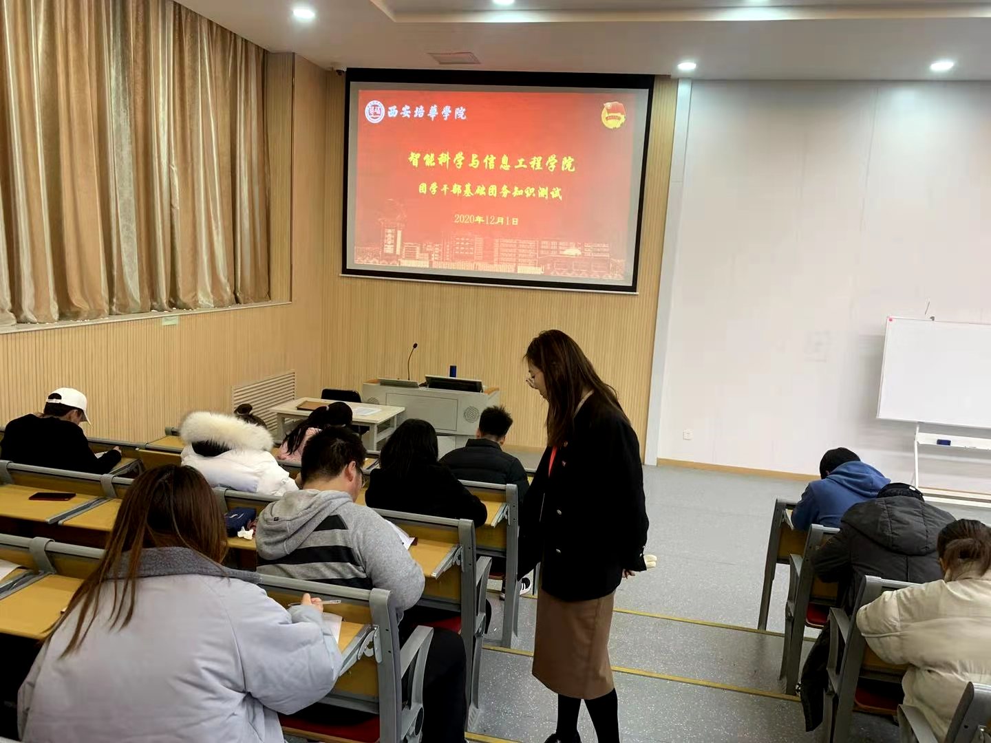 为全面贯彻落实共青团从严治团的要求,不断提升学生团干部的专业能力,加强团干部基础团务理论知识,考核团学干部学习成果。2020年12月1日中午,智能科学与信息工程学院团委在育英楼3502等教室进行“团务知识测试”。所有团学干部,各班级团支书,组织委员,宣传委员等250余人进行了基础团务知识考试。