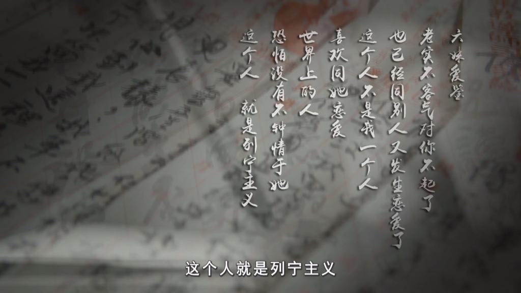“六妹爱鉴:老实不客气对你不起了,也已经同别人又发生恋爱了,这个人不是我一个人喜欢同她恋爱,世界上的人恐怕没有不钟情于她,这个人就是列宁主义。除了我们努力革命,再找不出别的出路,把一切旧势力铲除,建设我们新的社会。”