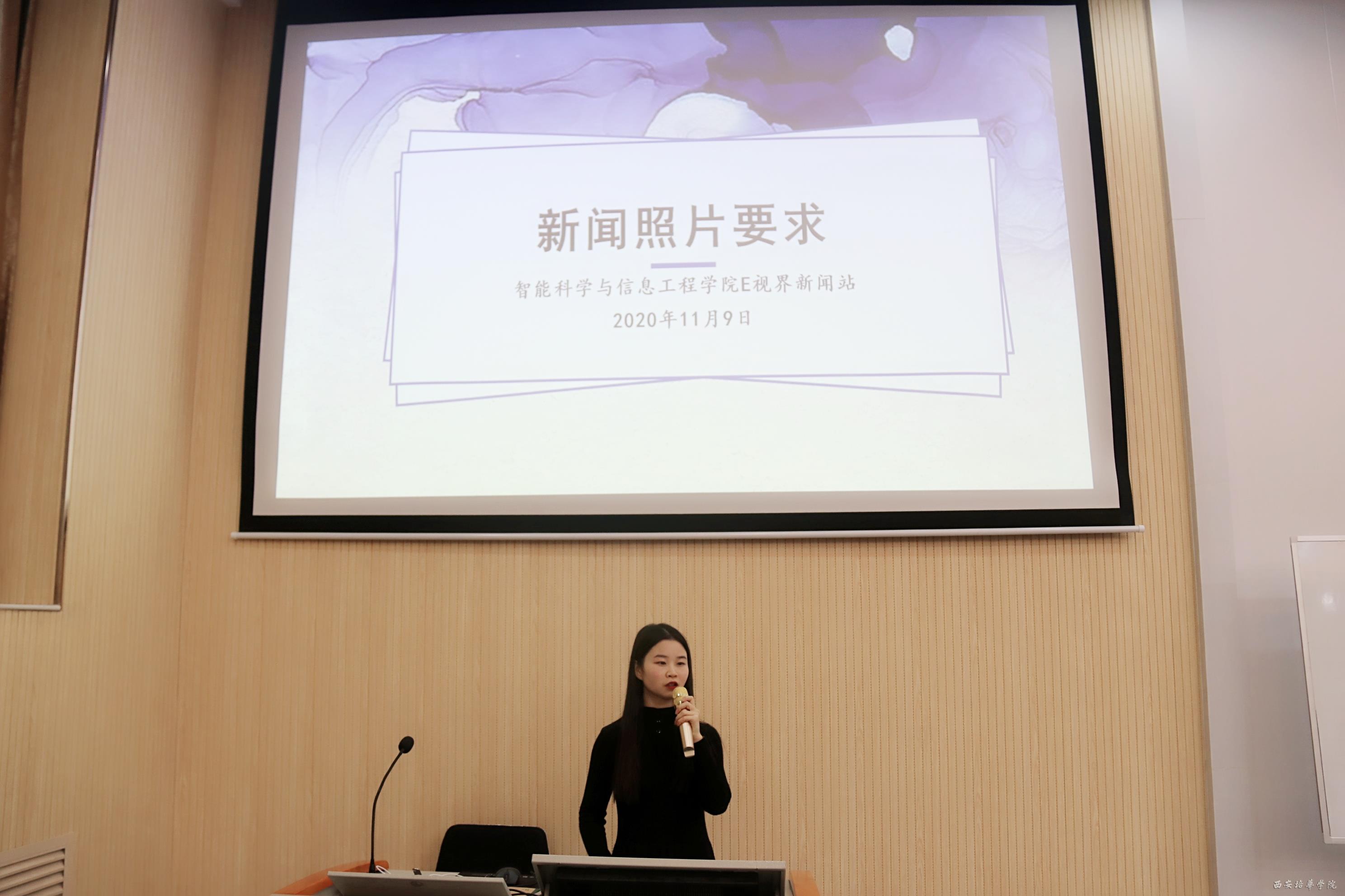 为加强我院学生组织新闻宣传队伍建设,提高学生组织各职能部门的新闻写作水平,推进院系宣传工作再上新台阶。2020年11月9日19:00,我院于育英楼3502教室开展了“新闻撰写培训会”,本次培训会由我院E世界新闻站站长李熙燕主讲。