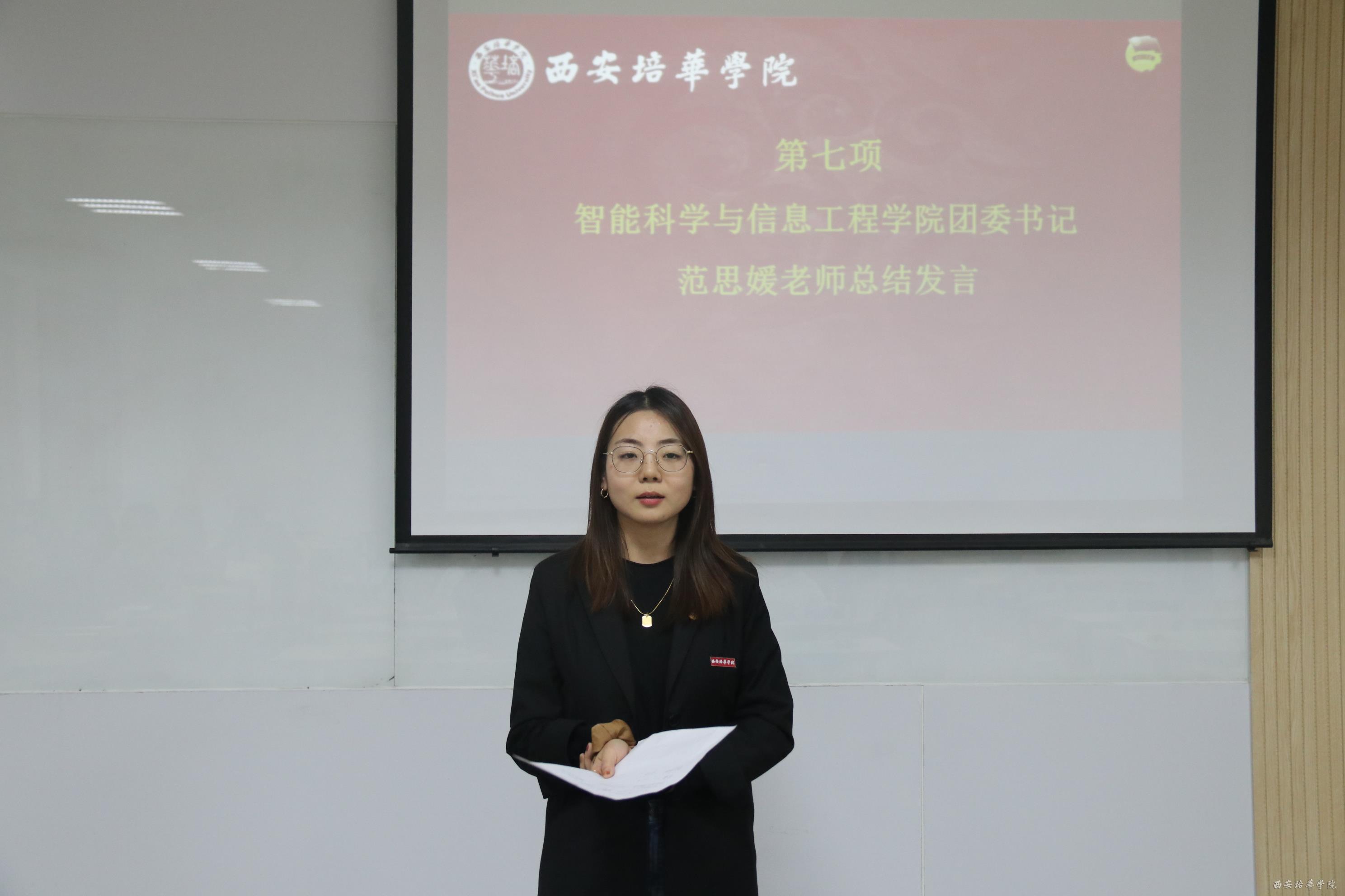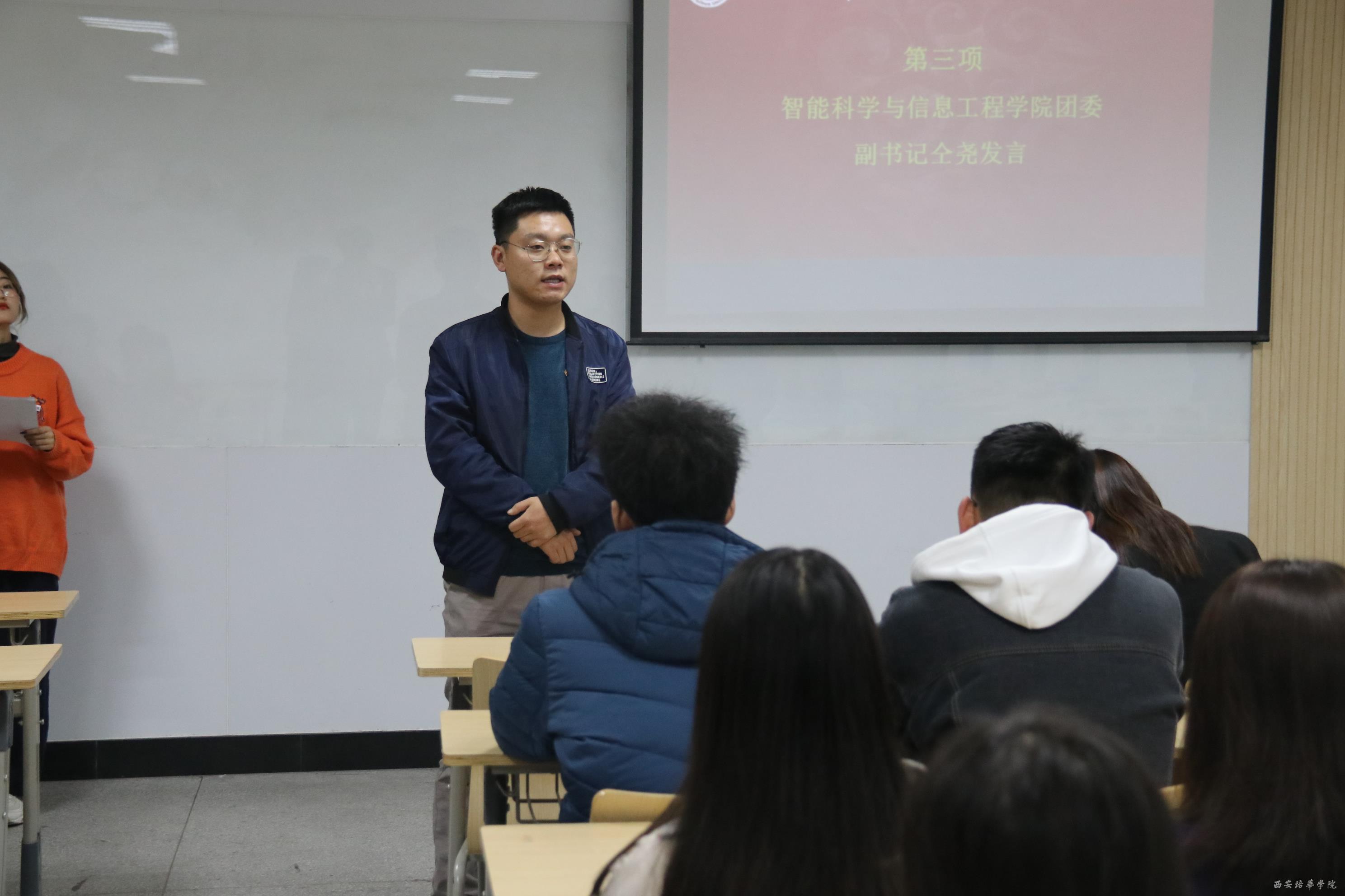 出席此次大会的有智能科学与信息工程学院团委书记范思媛老师、团委副书记仝尧、团委各部门委员及各年级团支书。本次大会由团委宣传部许梦莹主持。