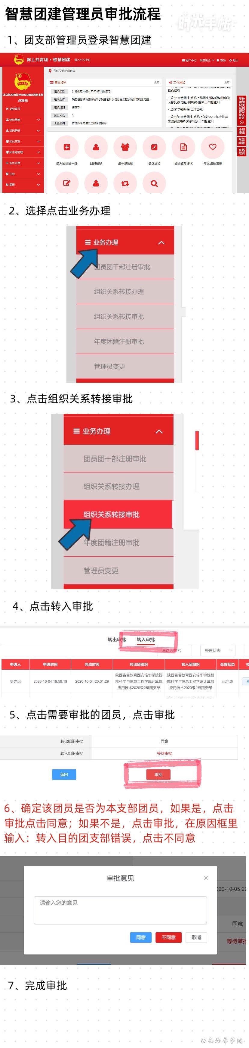 线上办理:搜索“智慧团建”,登录智慧团建系统,负责人需给各班分别建立团支部,再将各班团支书的团关系转入,负责人将团支书设为各团支部的管理员,再让各班团支书通知团支部的团员进行转入工作,最后各班团支书需在关系审核一栏进行审批,线上办理已完成。