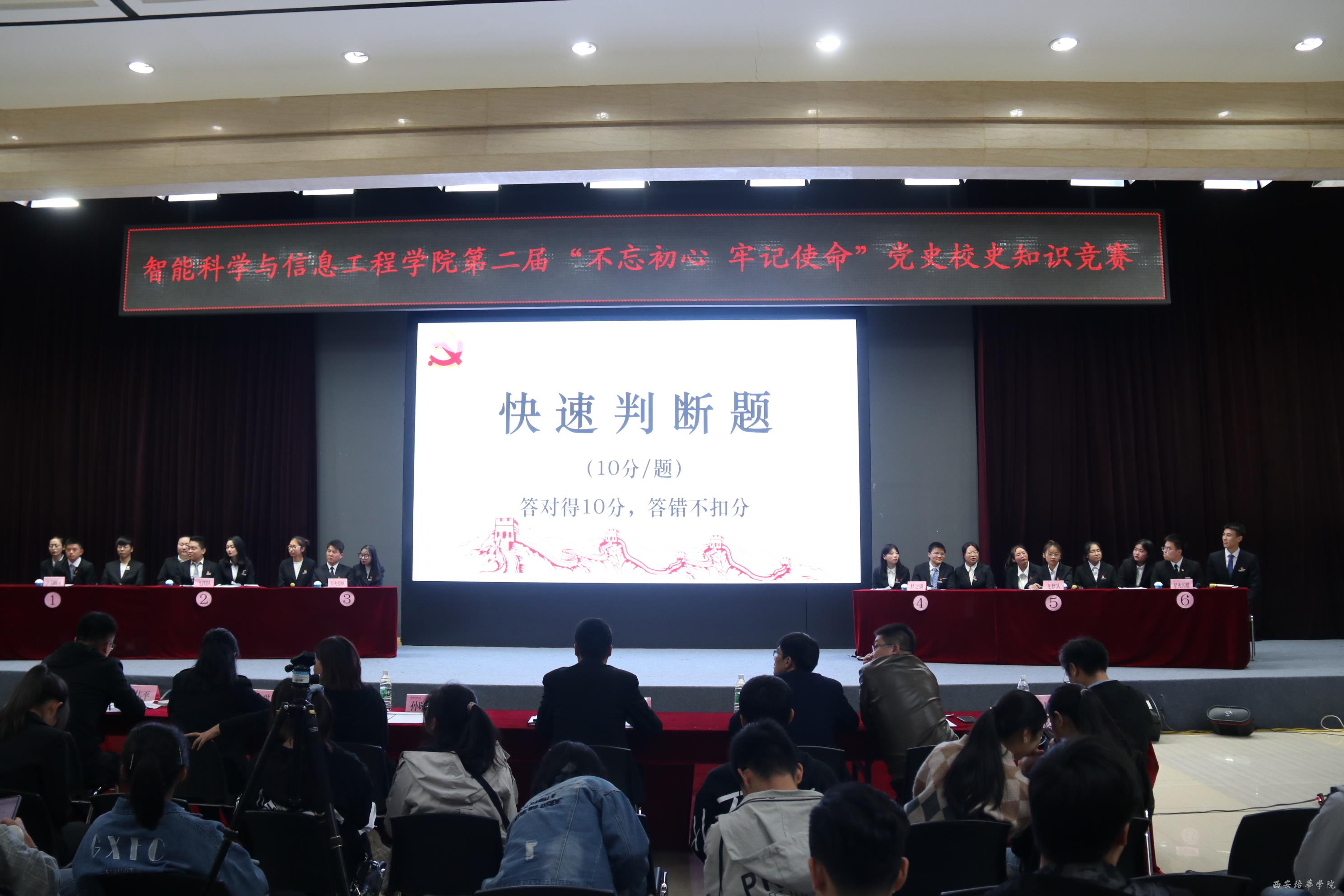 为深入学习贯彻落实习近平总书记关于党史、新中国史、改革开放史、社会主义发展史学习及新冠肺炎疫情防控工作的重要讲话和指示精神,持续深化全院师生爱党、爱国、爱校情怀,坚定理想信念,传承红色基因,我院党总支根据校党委《关于开展第二届“不忘初心 牢记使命”党史校史知识竞赛活动的通知》,认真部署、精密筹划,于10月21日在汇知楼阳光厅举办本次党史校史知识竞赛决赛。竞赛由智能科学与信息工程学院党总支主办,院团委承办。