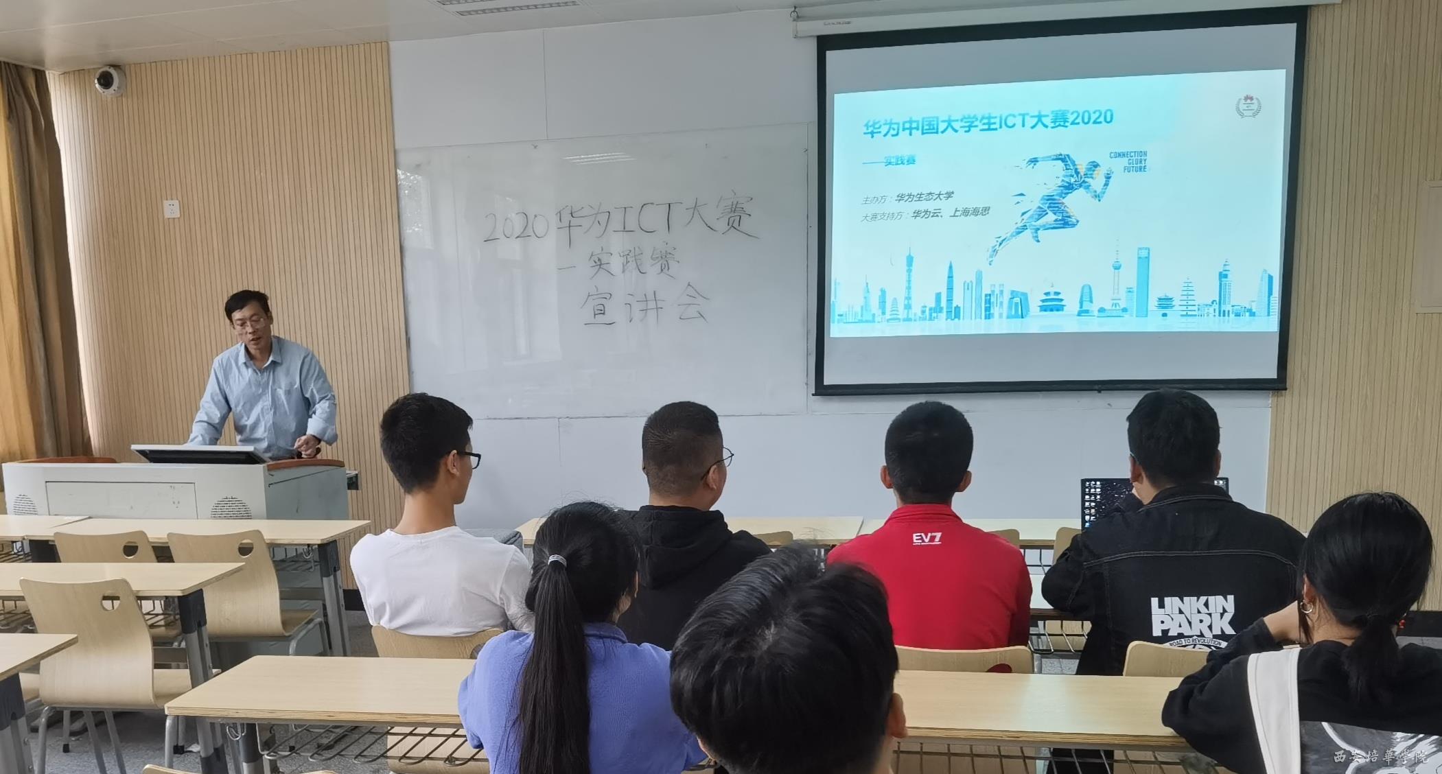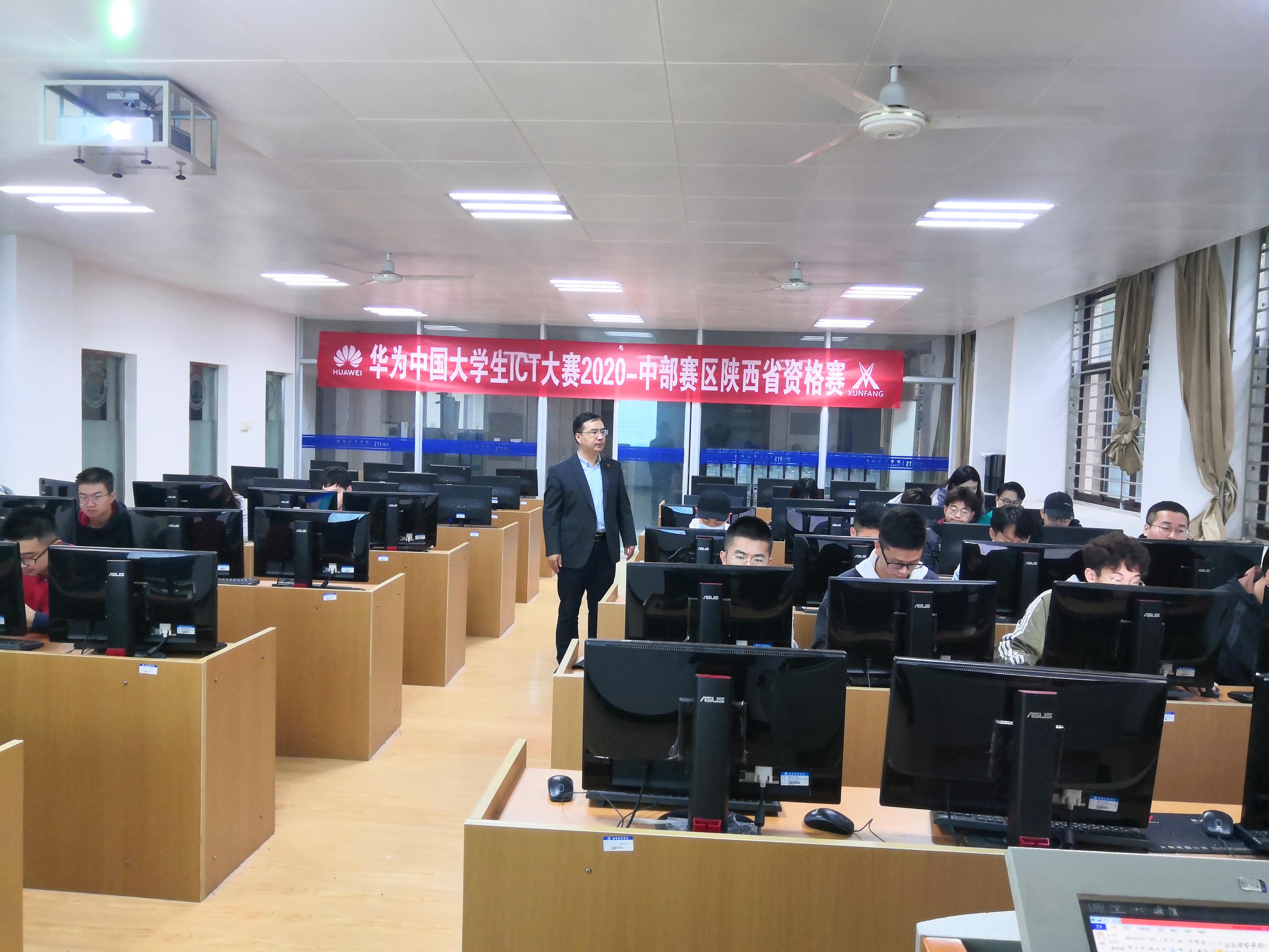 2020年10月11日,华为中国大学生ICT大赛-中部赛区陕西资格赛在培华学院3114教室举行,华为ICT学院派老师来校监考,我院指导老师徐进老师、尚向余老师一同组织监考。