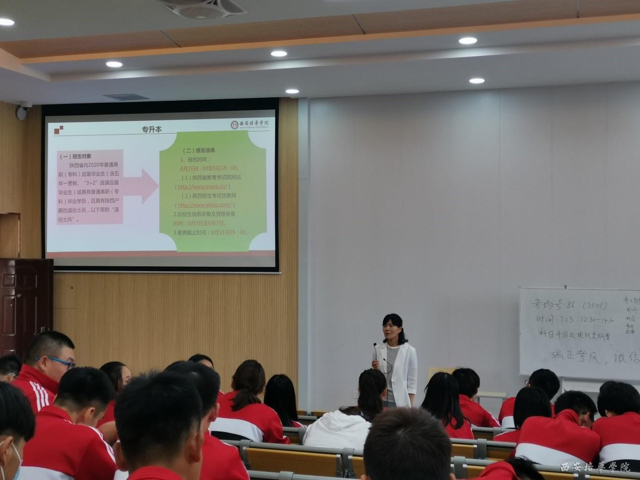 接着对学生们最为关注的职业资格证书、专升本情况以及就业前景做了详细解答,学生们思维活跃,积极提问,现场互动气氛活跃。