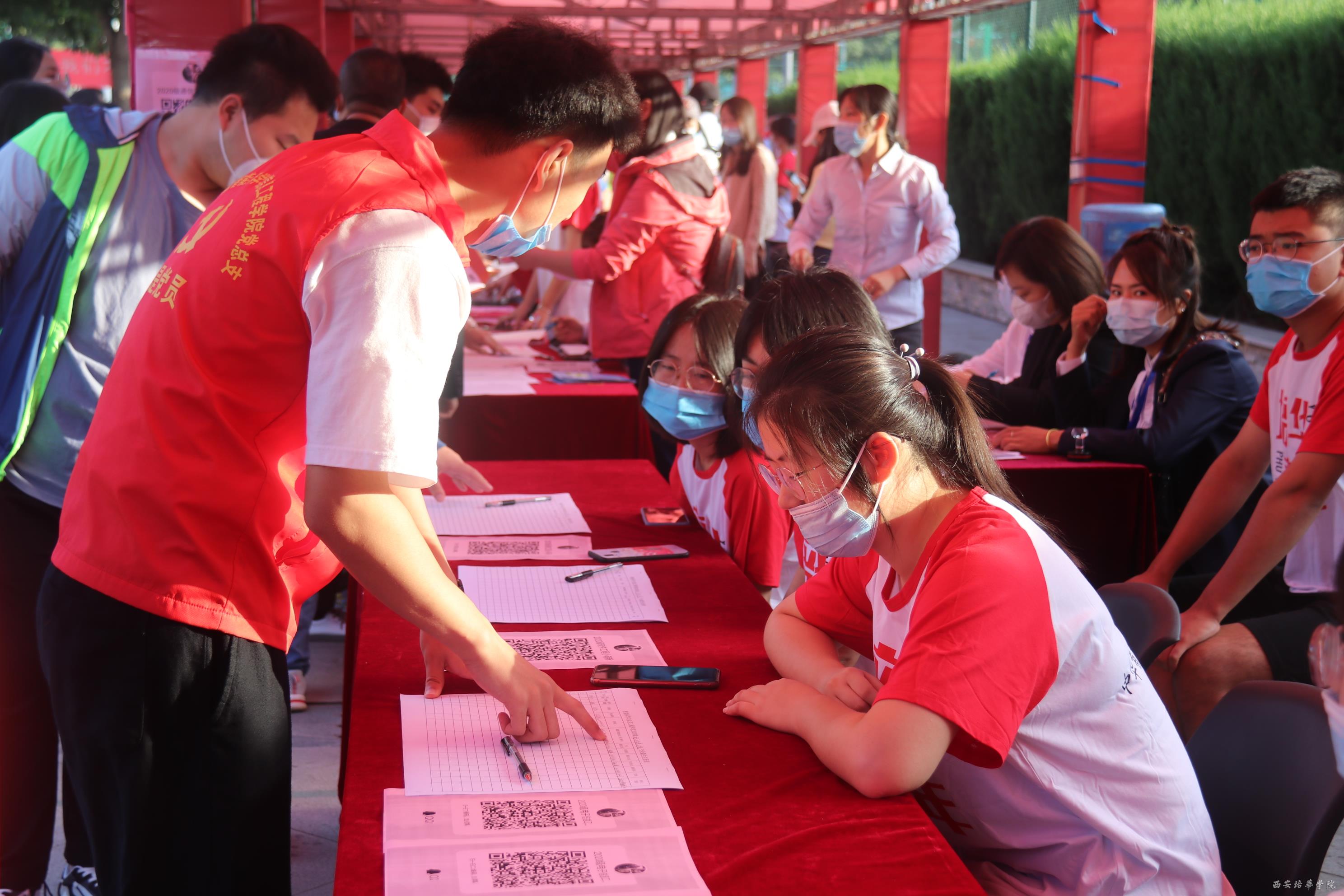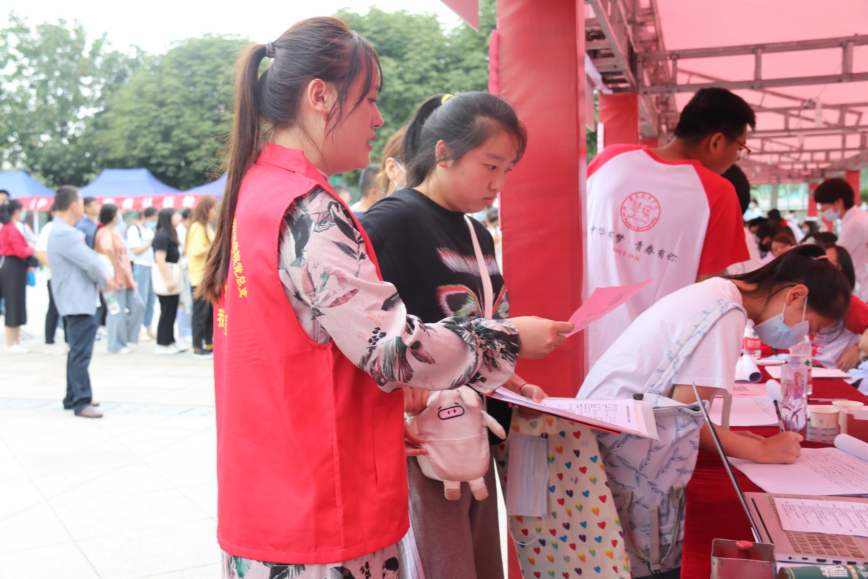 (工作人员带新生走流程的图)