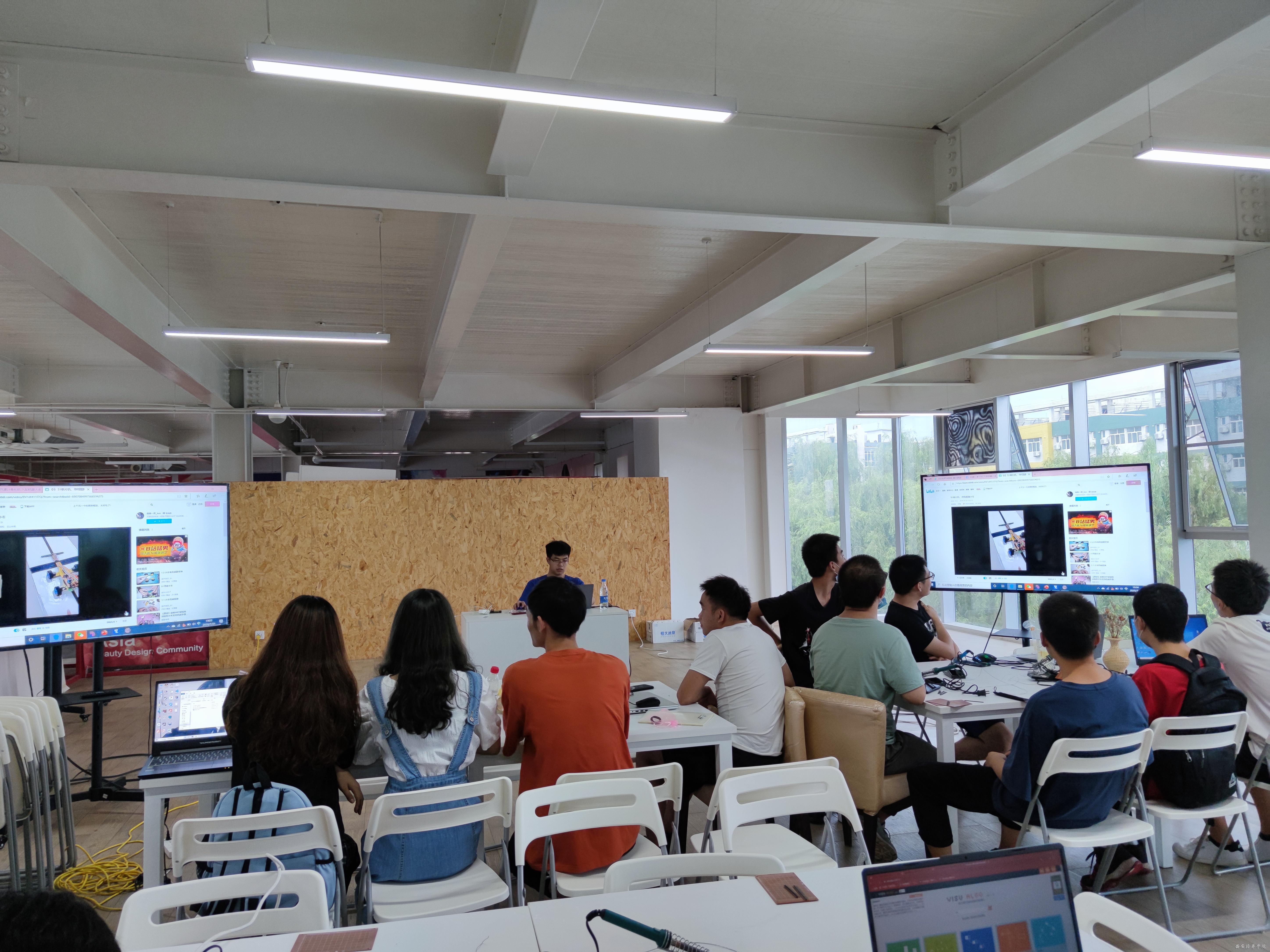 宋涛和余鹏飞学长带领同学们学习如何使用建模工具及3D打印机