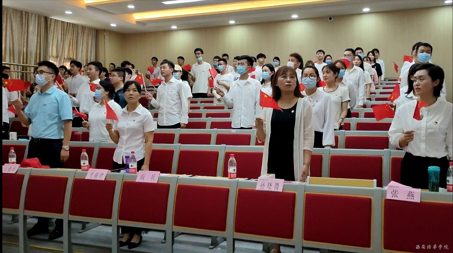 重温入党誓词,坚定理想信念。“要立为党之志,要修为党之心,要行为党之实”。 面对鲜红的党旗,院学生支部书记王伟平同志作为领誓人,带领到会的全体党员高举右手,再次庄严宣誓。“我志愿加入中国共产党……随时准备为党和人民牺牲一切,永不叛党。”铿锵恢宏的誓词,强烈震撼着在场的每一位党员,一字一句,神圣而豪迈,再次接受入党誓词的洗礼,广大党员更加坚定理想信念,牢记初心使命,以实际行动恪守对党的承诺,忠实践行自己的入党誓词!
