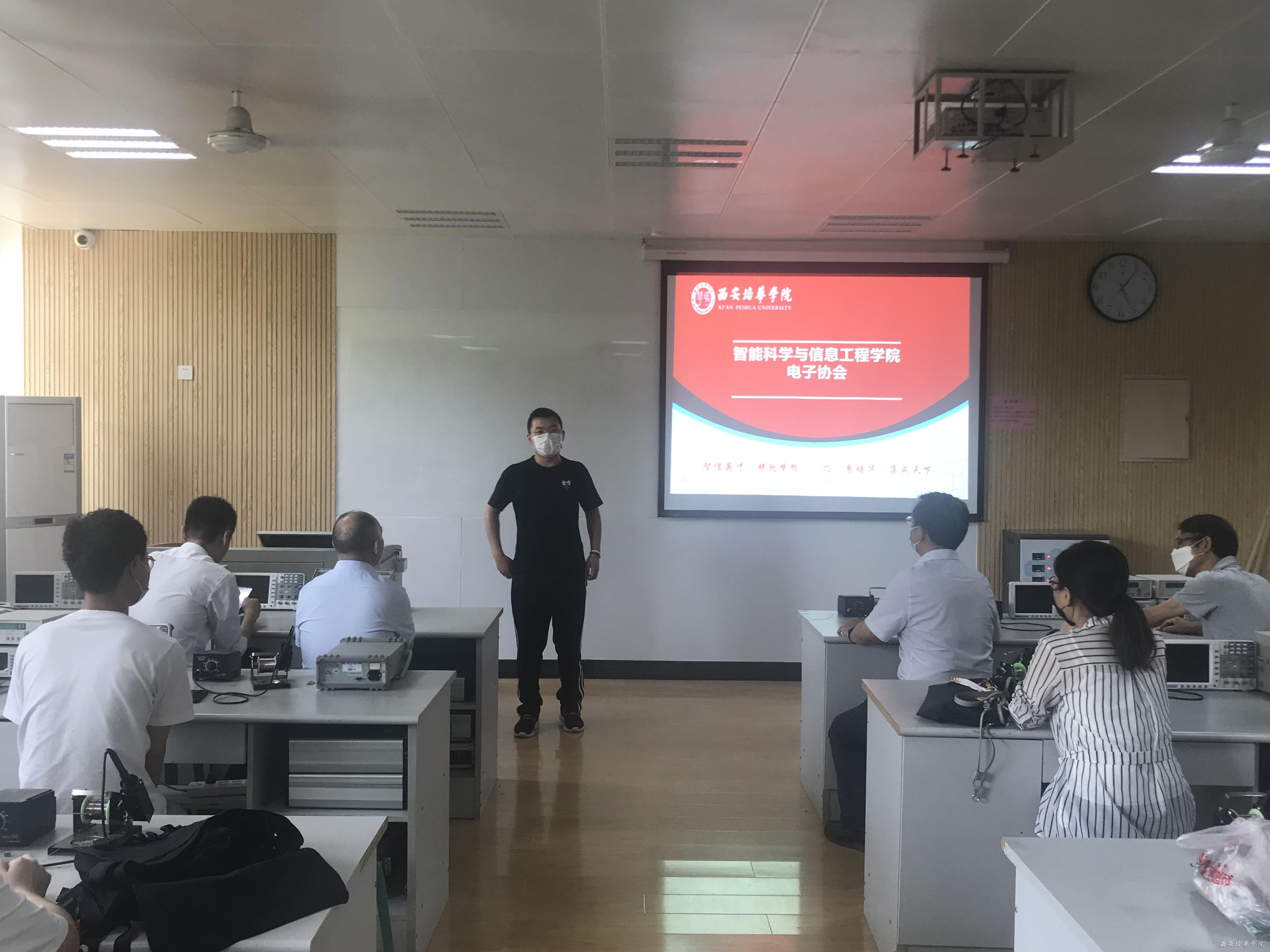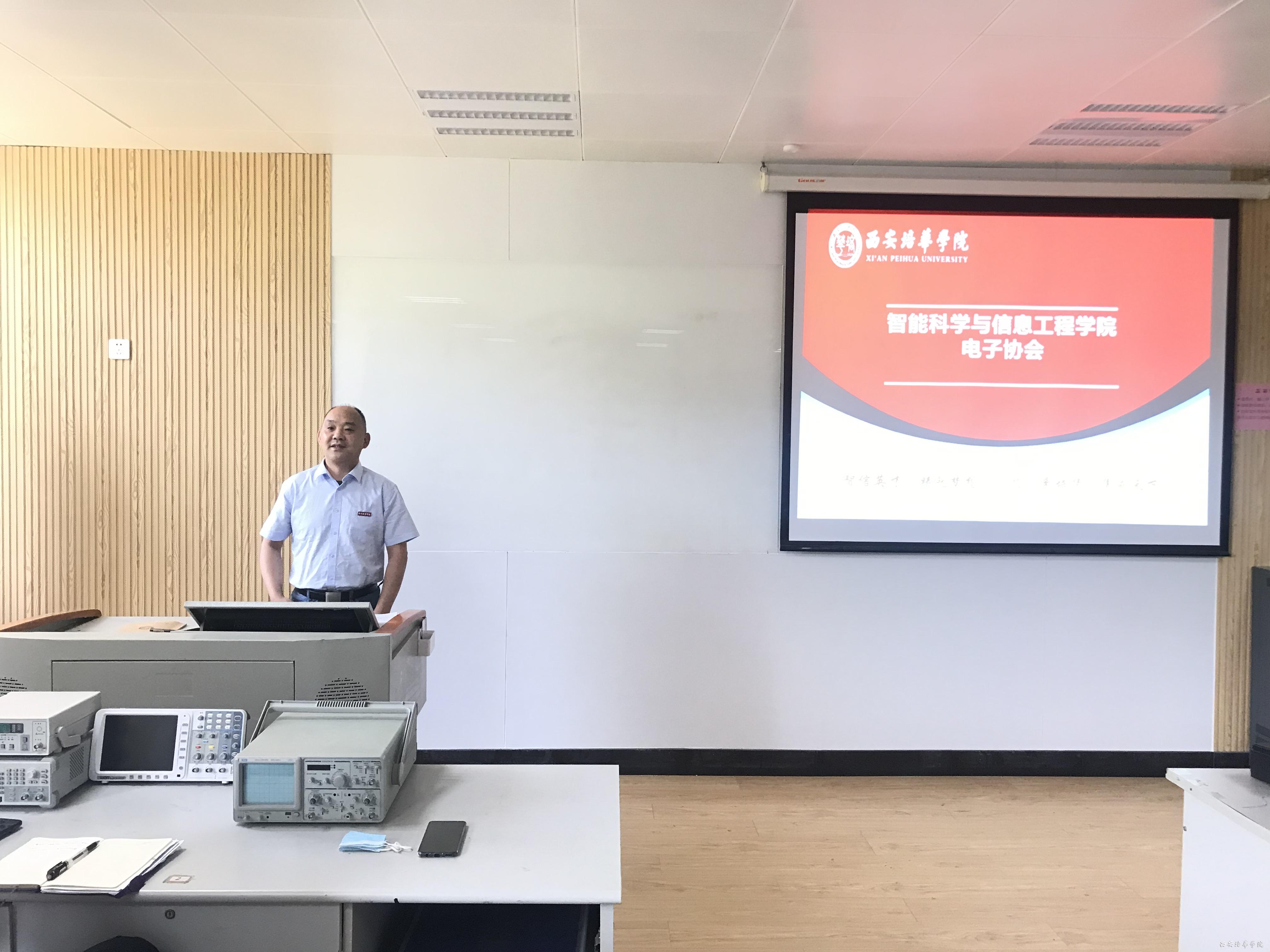 2020年6月6日16:30,智能科学与信息工程学院电子协会成立大会于育英楼3120教室如期举行,出席本次大会的领导和老师有智能科学与信息工程学院党总支书记兼行政副院长南兵,智能科学与信息工程学院副院长田孝华,电子系主任徐进老师,实验室主任陈实培老师以及电子协会指导老师胡亚维老师。本次大会由电子系主任徐进老师主持
