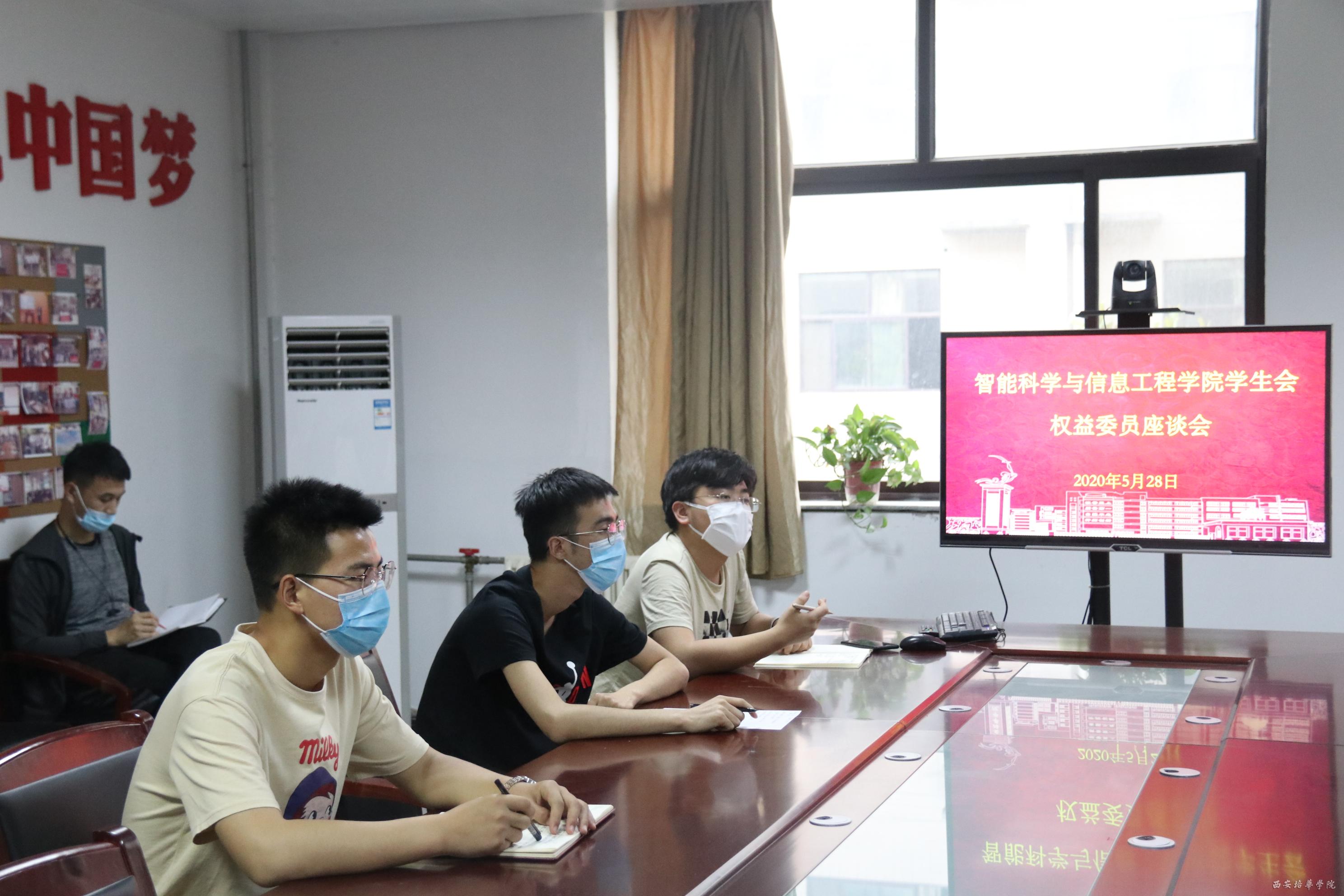 为普及权益知识,交流学生意见,我院学生会权益部于2020年5月28日19:00点,在党员会议室召开权益座谈会,本次座谈会贴合学生生活,目的在于寻找并解决学生日常生活中的相关问题,并延伸2020年“315”线上会议精神,以“深入学生、了解学生、服务学生、解决问题”为宗旨,贯彻落实“315”权益维护精神。参与本次座谈会的有我院学生会主席汪南、副主席许家晨、权益部部长闫航、以及各班权益委员。