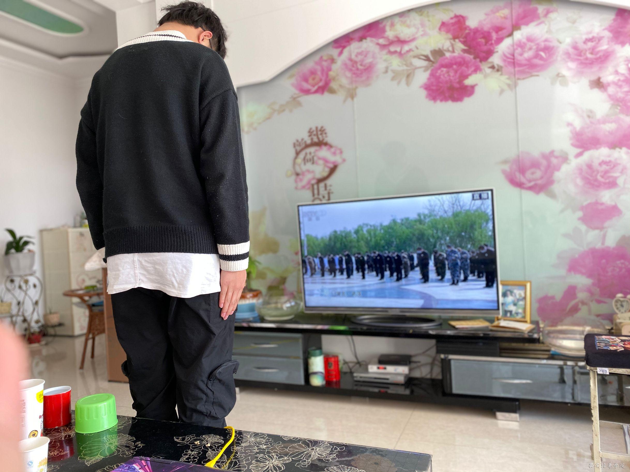 在国务院的号召下,为了表达在抗击新冠肺炎疫情斗争牺牲烈士和逝世同胞的深切哀悼,我院学子开展了“为英烈默哀三分钟”清明祭奠活动。“青春换得江山壮,碧血染将天地红”我院师生面对电脑、电视下半旗的照片默哀3分钟。在庄严肃穆的氛围中,个个神情严肃,两手紧靠双腿两侧,集体低头默哀,一起悼念在疫情中牺牲的烈士和同胞们,祈祷疫情早日结束,人间皆安。