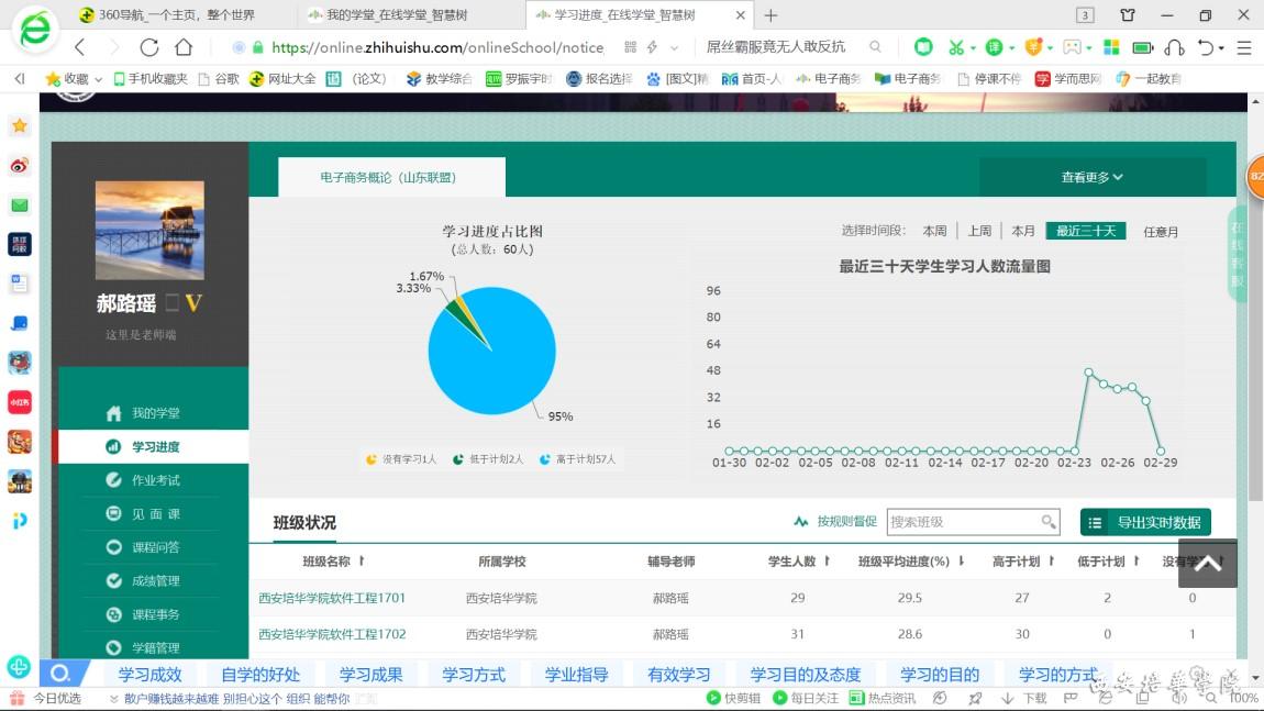 利用智慧树的在线视频建立了共享课堂,共享课满足了学生日常在家对课程基本内容的学习,教师还可以通过该软件方便查看学生学习进度、习题完成情况、学习效果并实现学生学习的管理。