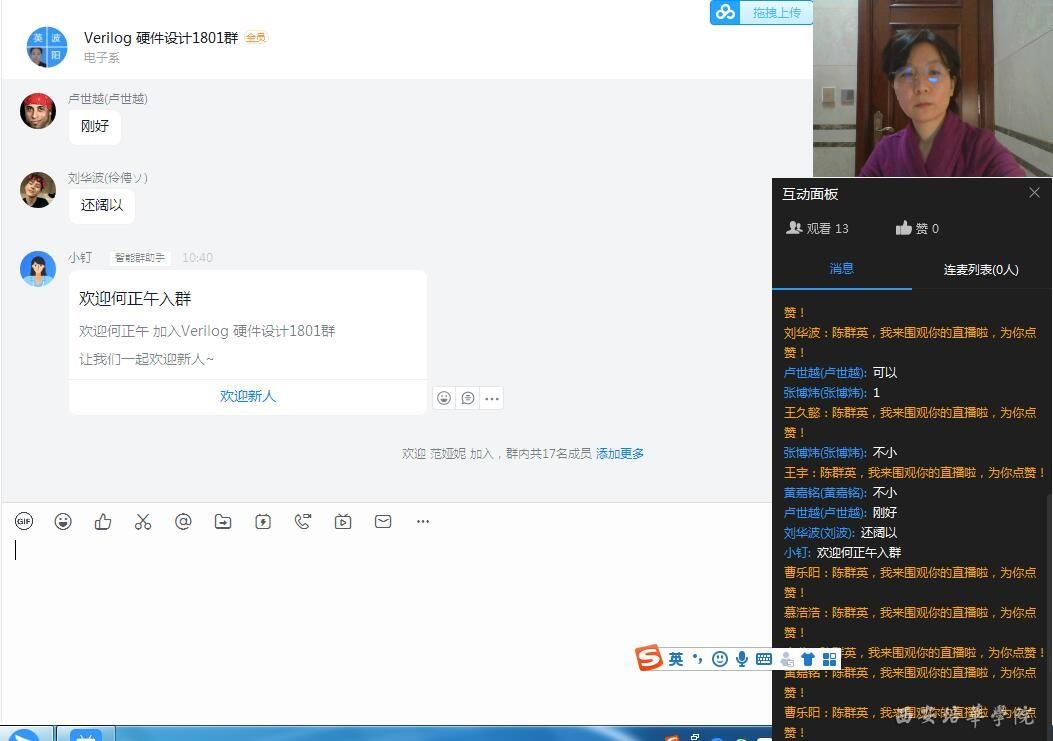 从部署“停课不停教、停课不停学”,到第一周实施网上教学,效果怎么样呢?3月1日上午,电子系老师通过企业微信会议展开了热烈讨论。会议由电子系主任徐进老师主持,陈群英副教授、郝路瑶博士先后详细分享了第一周网课授课经验体会,路陈红博士、刘小虎老师分享了线上预习课实施经验,其他各位老师纷纷就教学软件使用问题、教学效果把控、下一阶段网课准备进行了讨论。老师们信心满满,在特殊时期,强化信息化教学手段,迎接新时代教育改革。