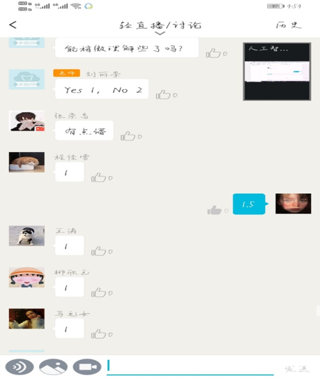 学生参与讨论发言,较为踊跃,绝大多数班级签到率为100%,极少数学生由于网络不佳出现晚签到的情况老师也都及时处理。学生的学习效果无论从听课状态、从语音留言、视频图片均可以反映我院教学效果目前来看总体状态较好。我院老师均应急转为QQ直播腾讯课堂、钉钉、微信群直播等,确保教学过程顺利完成。