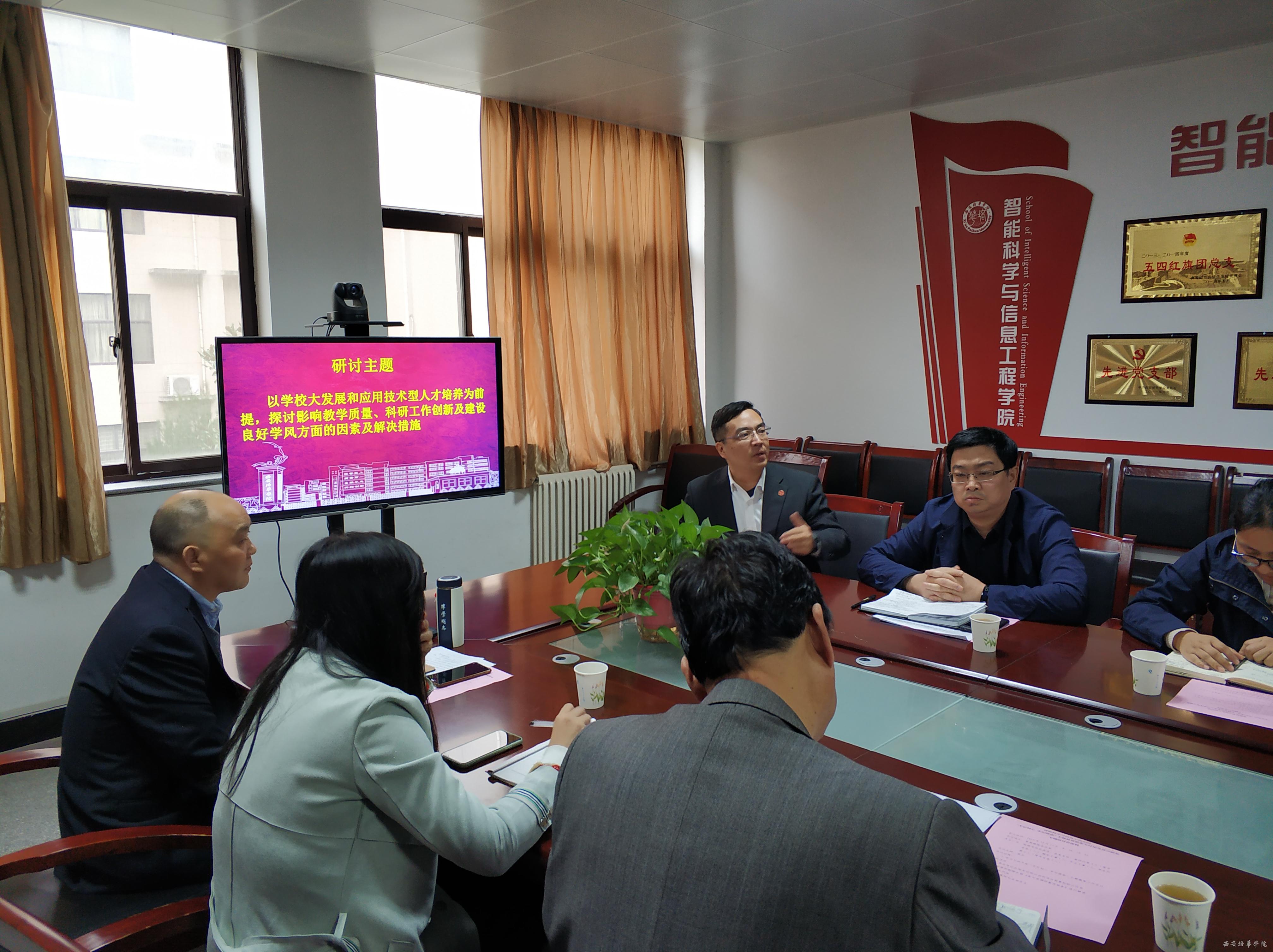 会议开始,全体参会人员共同学习习近平在“不忘初心、牢记使命”主题教育工作会议上的重要讲话。南兵同志传达了校党委关于印发《“不忘初心、牢记使命”主题教育思想大讨论及建言献策活动方案》,希望到会的所有领导、教师和学生们能够以发展为目标,进一步解放思想,更新观念,厘清思路,明确目标,充分发挥集体的智慧、发挥全体教职工的主动性和创造性,结合学院学科建设、教育教学管理、科研创新、人才培养方案制定、一流专业建设、专业工程认证等重点工作,“以学校大发展和应用技术型人才培养为前提,探讨影响教学质量、科研工作创新及建设良好学风方面的因素及解决措施”展开专题研讨。