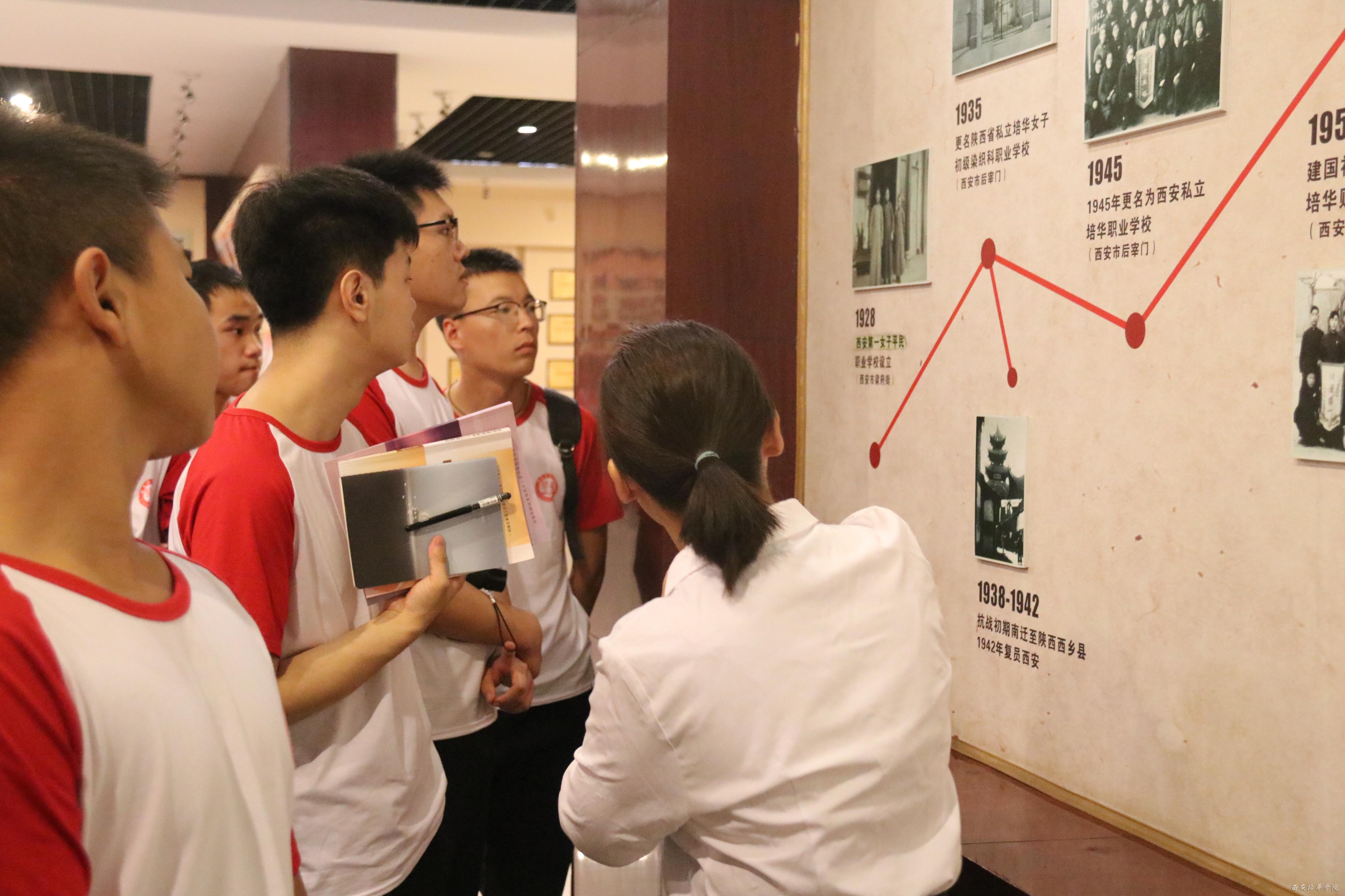 同学们簇拥在校史馆讲解员的周围,聚精会神地聆听着我校九十余年的发展历程,敬佩着学校曲折艰难的历史沿革,将九十余年沧桑与辉煌印刻在对培华无限的崇敬之中。