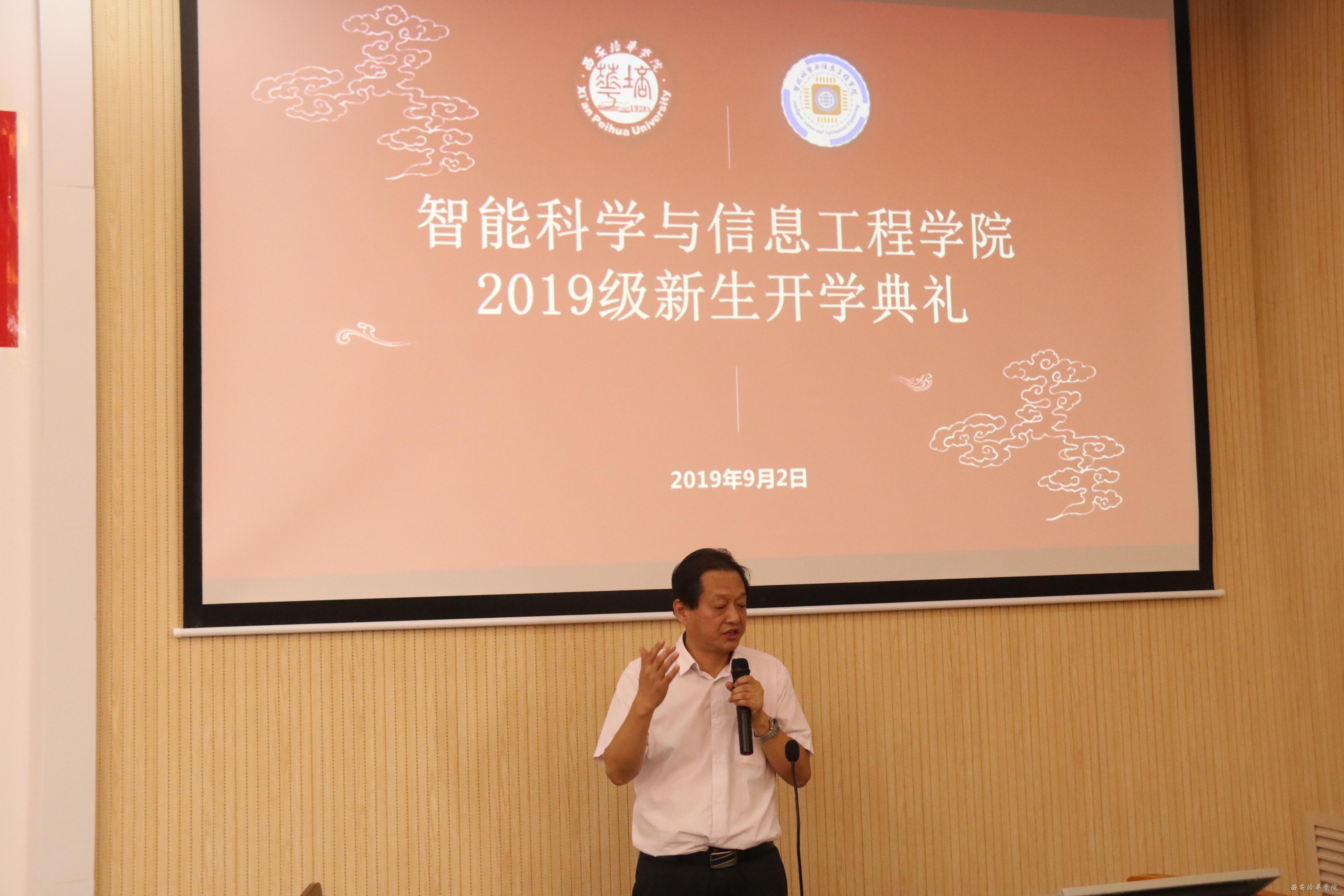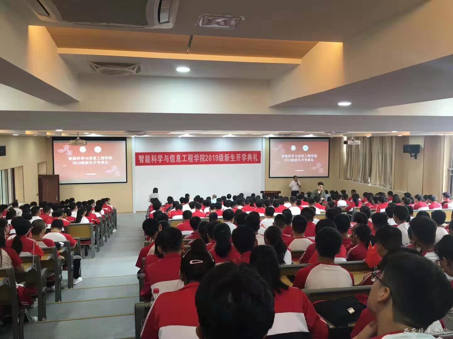 9月2日8:00,智能科学与信息工程学院2019级新生开学典礼在育英楼3506教室召开,院长程国建教授、副院长田孝华博士、党总支书记兼行政副院长南兵及各专业带头人、各系主任、副主任、实验中心主任、党务行政干事、教学干事、辅导员老师和各专业任课老师以及2019级全体新生。开学典礼由院团委书记范思媛老师主持。